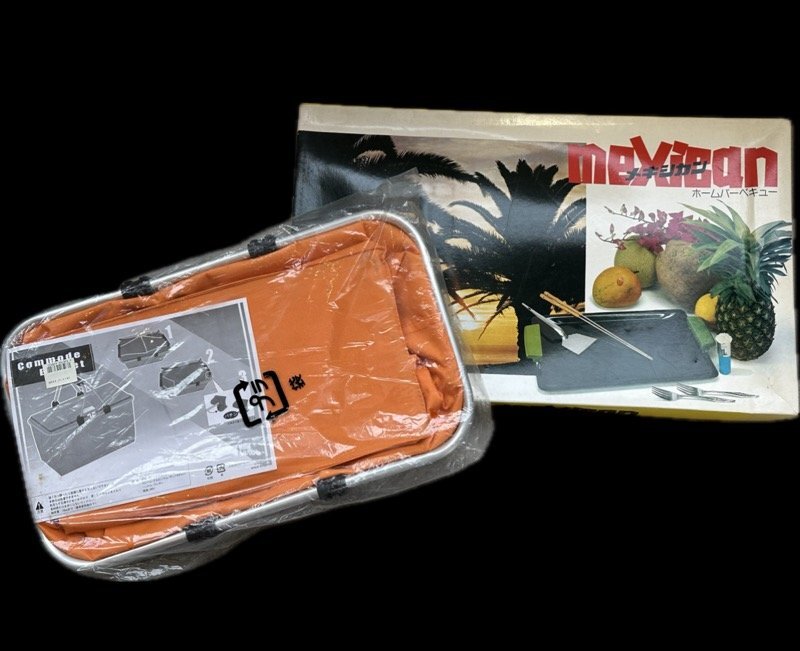 コモードバスケットとバーベキューセットです。 長期保管品のため、鉄板自体はキレイなのですが持ち手に傷があります。 鉄板のサイズ感は画像をご参照ください。(4枚目) |