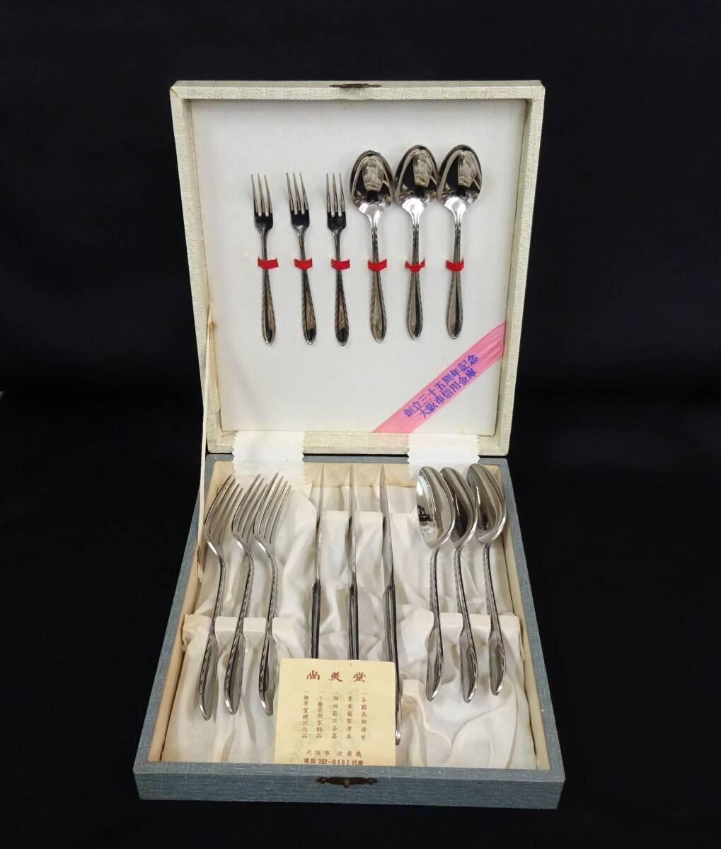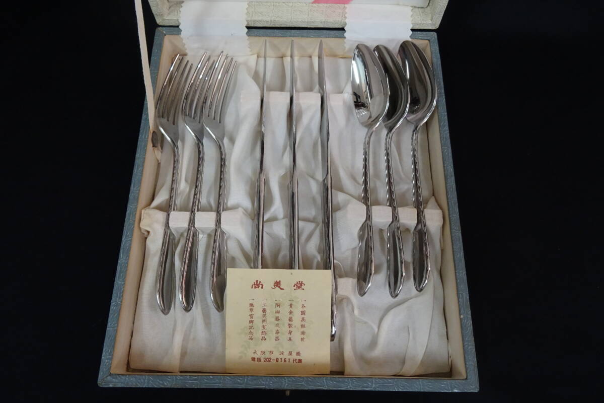 未使用 LUCKY WOOD カトラリーセット スプーン フォーク ナイフ MOLYVANA STAINLESS ステンレス 15本セット 箱付 昭和レトロ 尚美堂