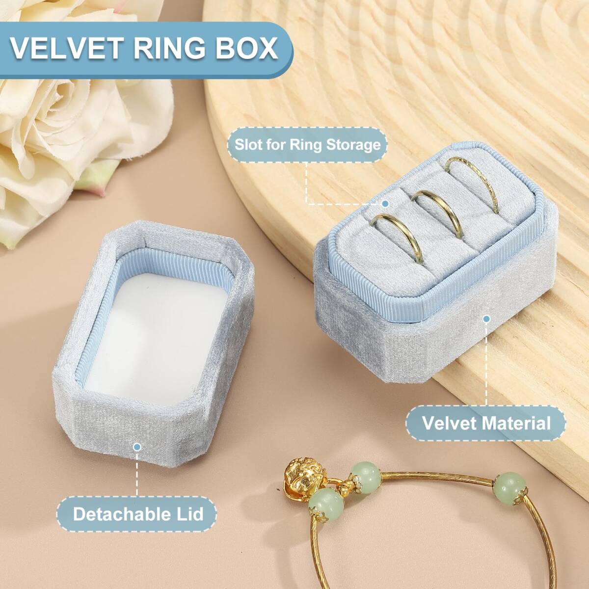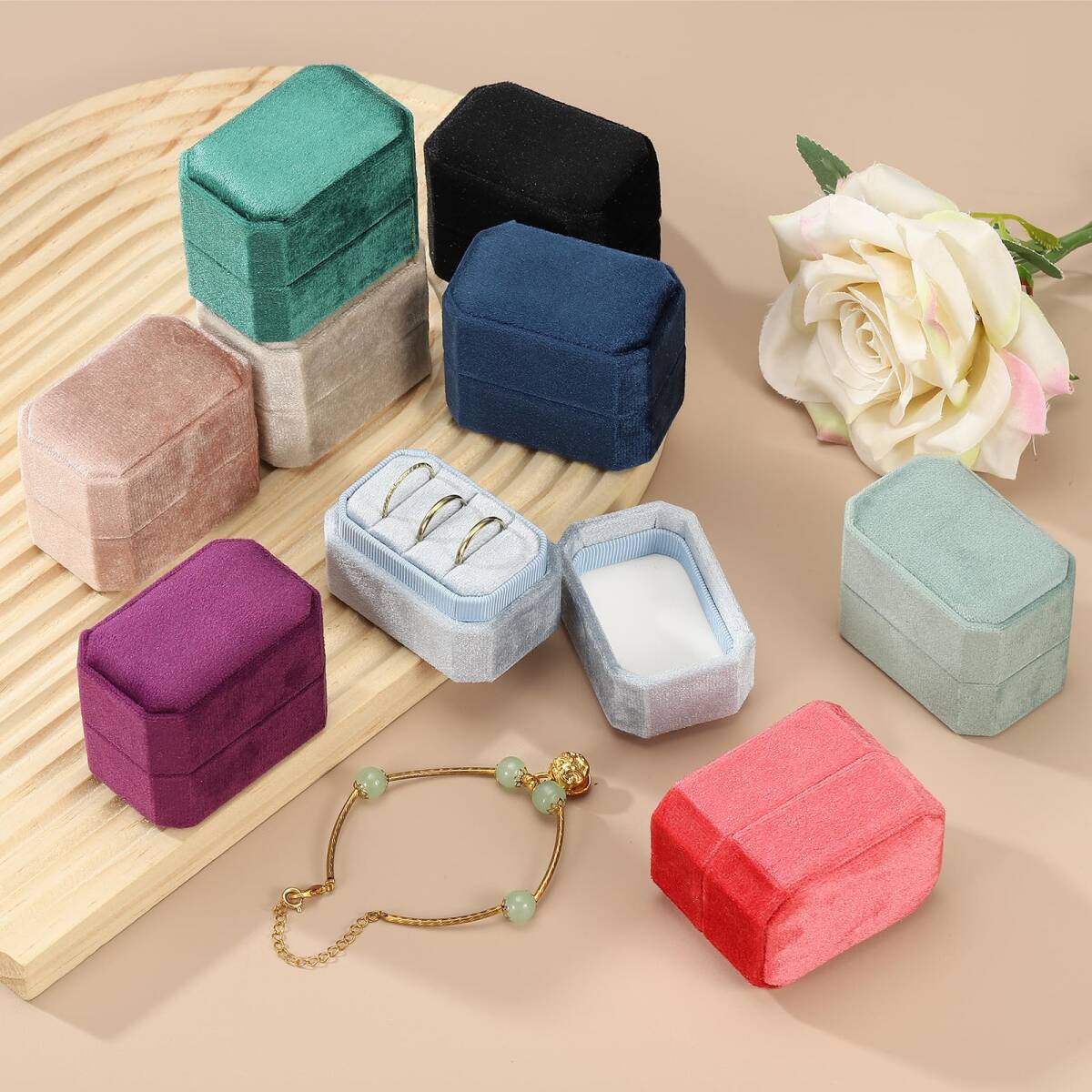 エレガントで精巧なこのベルベットリング収納ボックスは、モダンな八角形のデザインを採用しており、リングを見せるのに最適で、収納もできます。プロポーズ、エンゲージメント、ウェディングフォト、旅行、贈り物などの機会に適しており、美しい人生の幸せな思い出を作り出します。