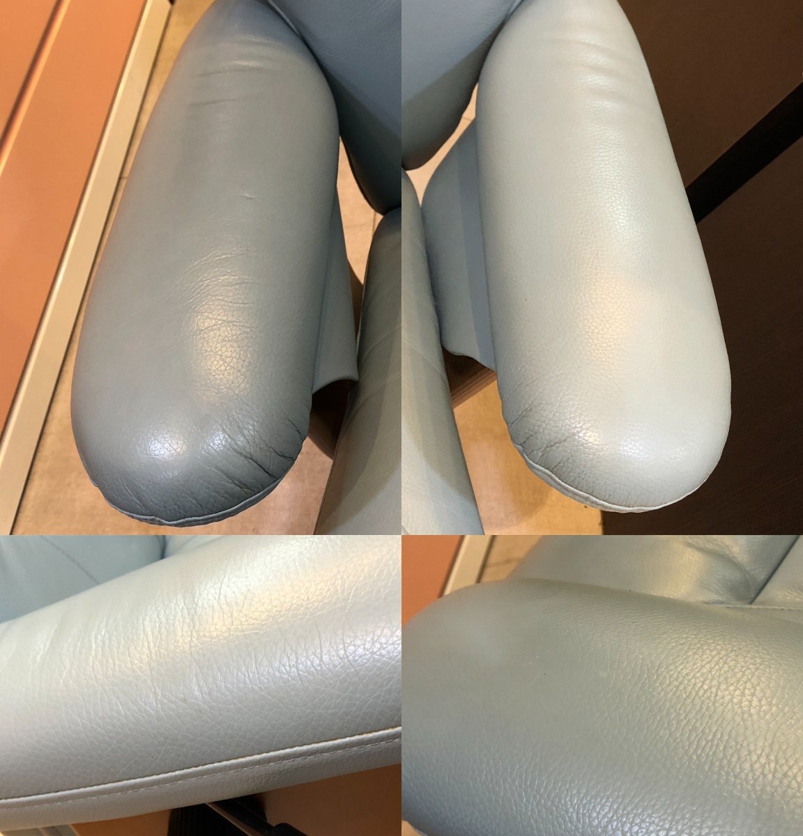 座面・肘掛けに経年のシワがあります。