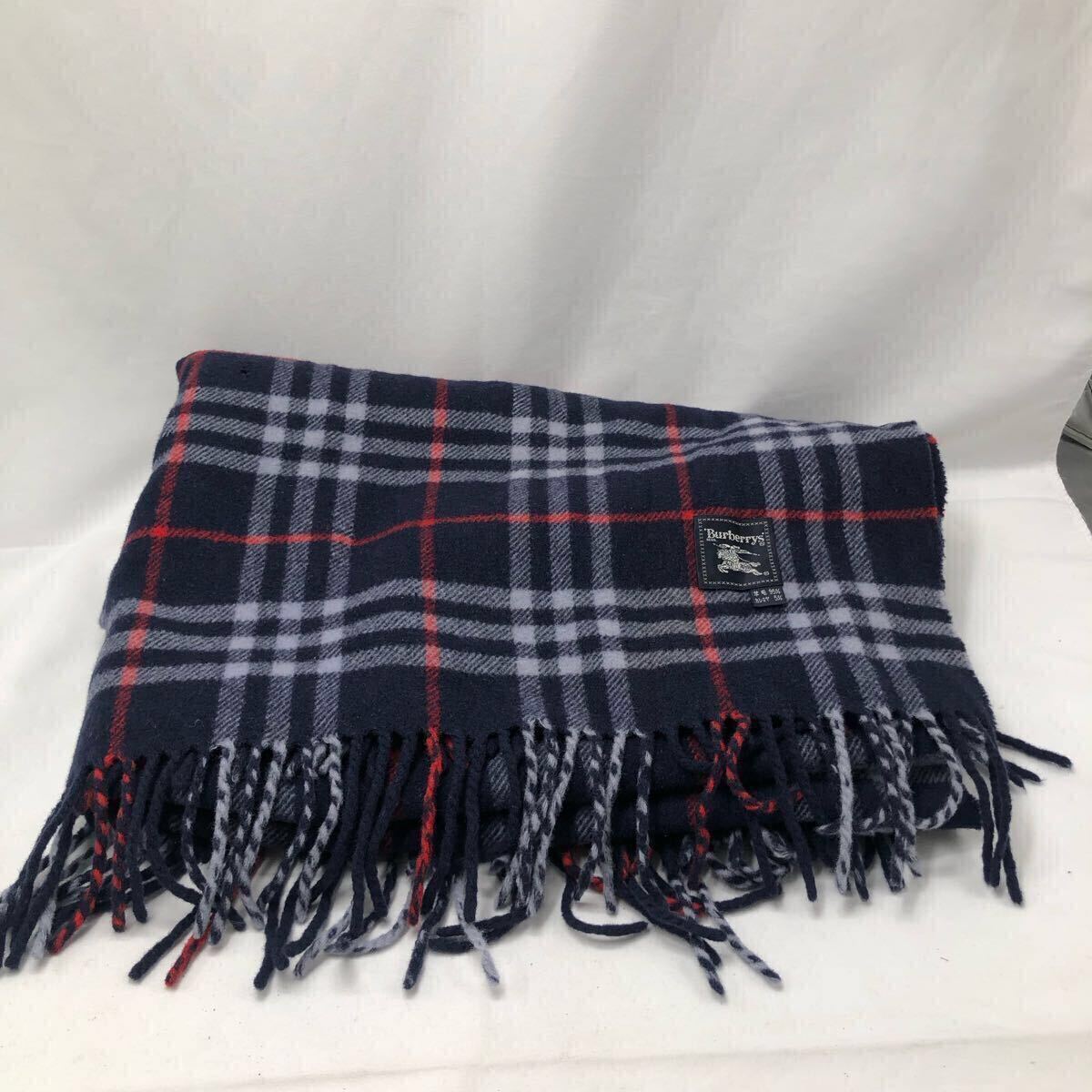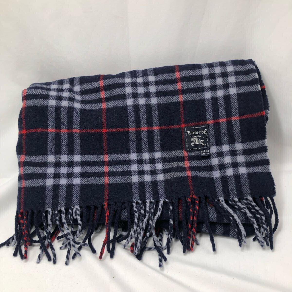 ・品名:BURBERRY バーバリー ストール マフラー カシミア5% ウール95% チェック柄 ネイビー 中古 YS S2TE