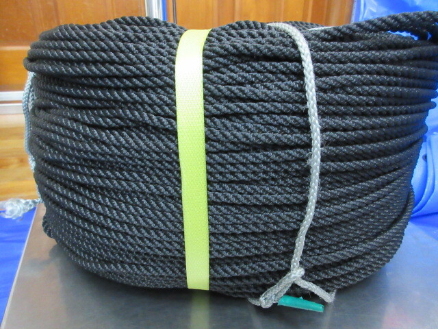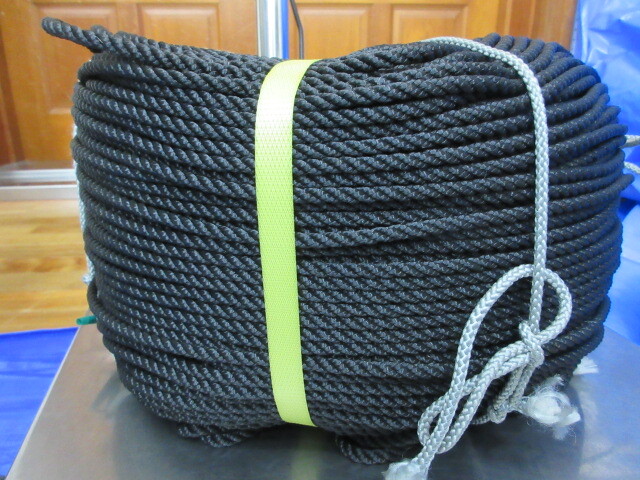 激安・新品・国産☆黒/テトロン 三つ打ちロープ 岩糸◆6mm 11.3Kg(8873)