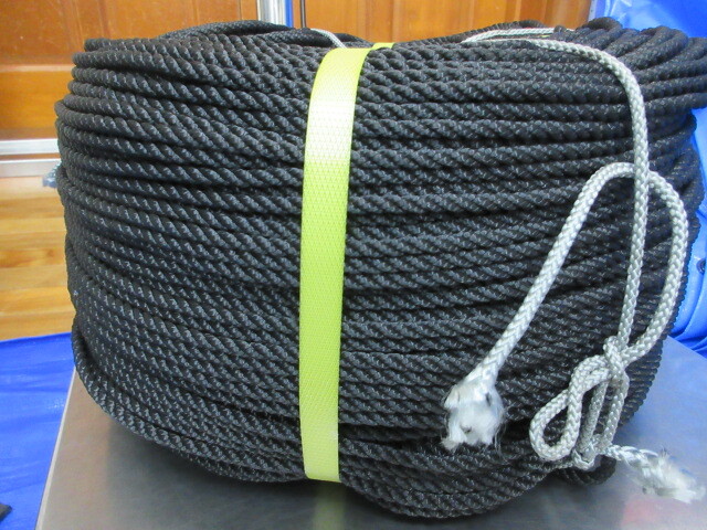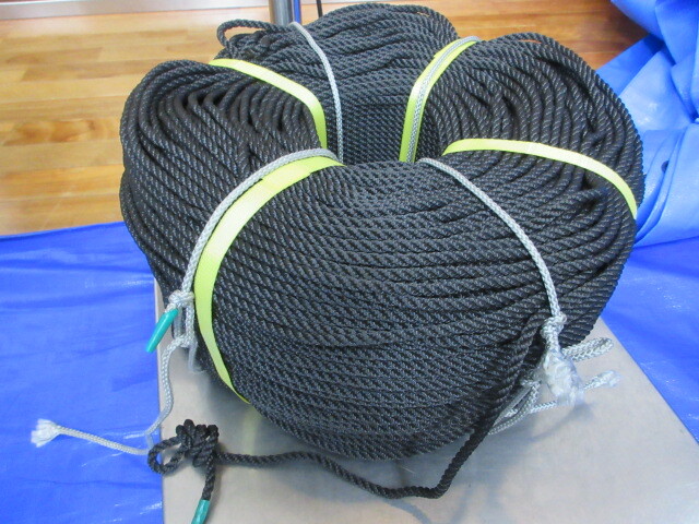 大特価!新品・国産★黒/テトロン 三つ打ちロープ 岩糸★