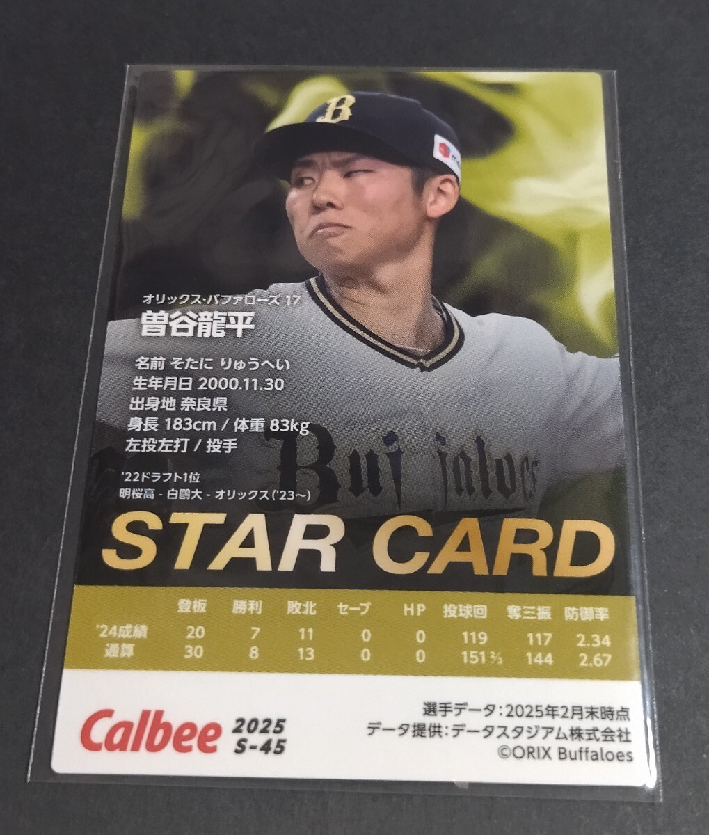 2025年カルビー 第2弾 曽谷龍平(オリックス)スターカード。No,S-45。