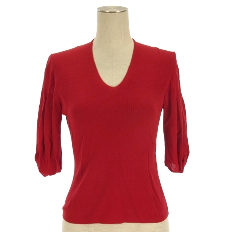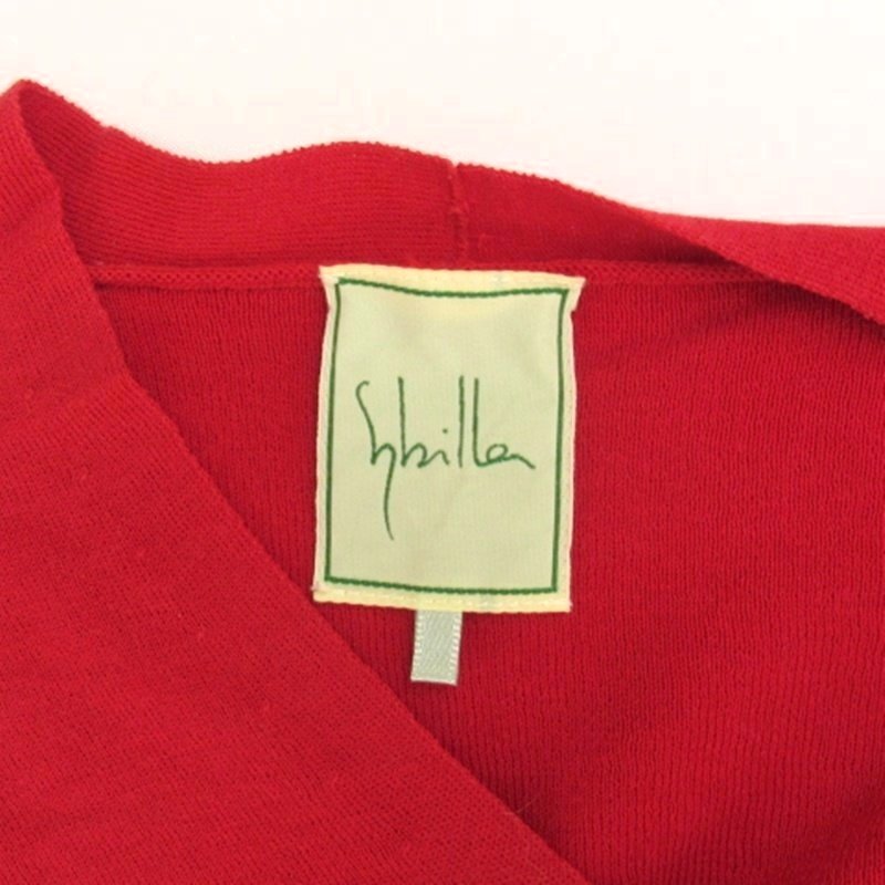 シビラ SYBILLA Vネック ニット カットソー 五分袖 レッド M ■GY43 レディース