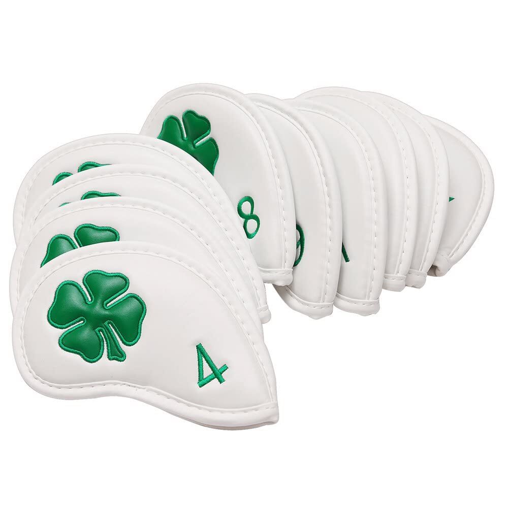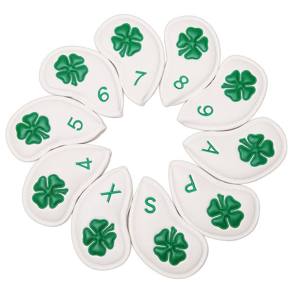 品名:ゴルフアイアンカバー 4番〜9番 AW PW SW X 10枚 セット 素材:高級感のある合成皮革素材(表地主要素材)、アクリル(裏地) 特徴:超撥水 傷防止効果よく 着装やすい