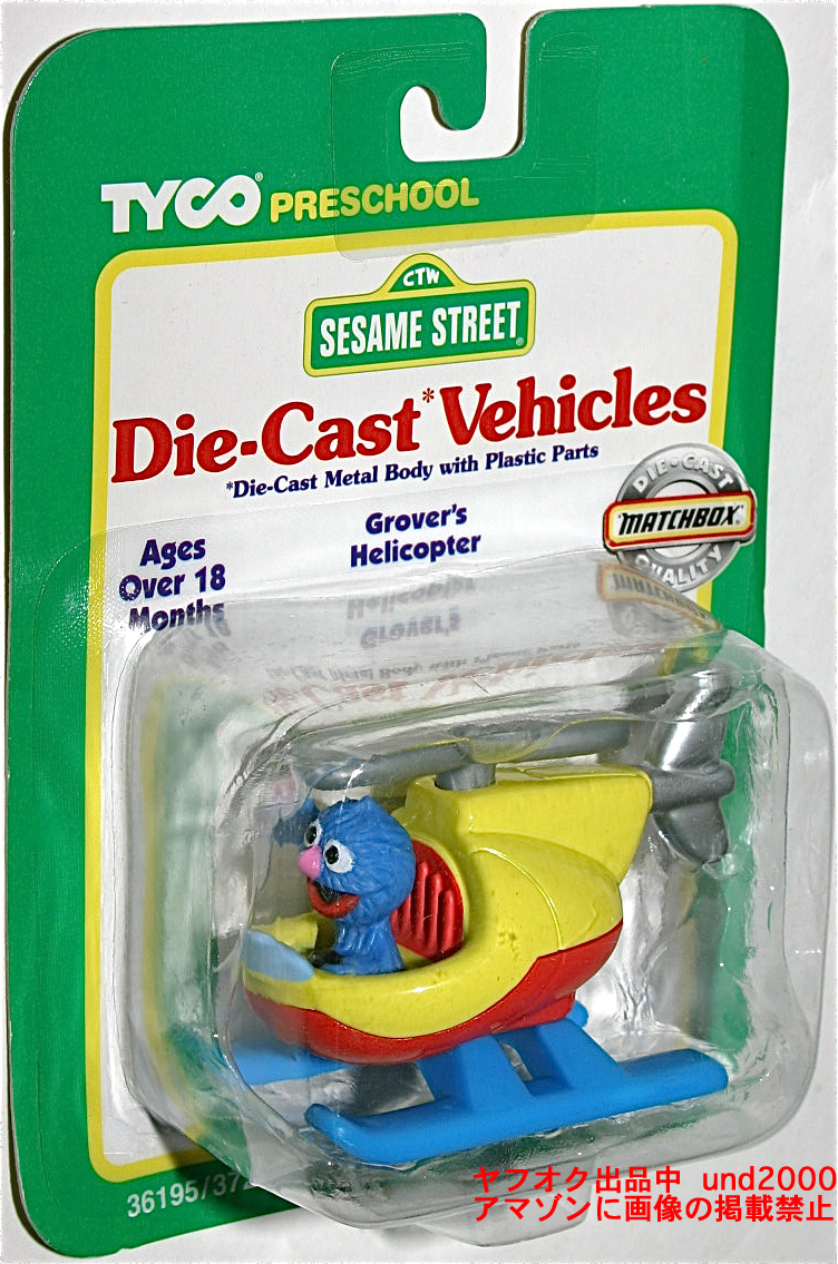 マテル、Tyco Preschool Toys Inc.、Sesami Street Die-Cast Vehicles、Grover's Helicopter。セサミストリート、グローバーのヘリコプター、ダイキャスト・メタル製。全長約6.5センチ。1997年頃の製品。マッチボックスの商標付きモデル。マッチボックスは1993年にタイコ、その後タイコが1997年にマテルに買収され、現在はマテルのブランドです。未開封品。本体良好、ブリスターに弱いへこみ、台紙にシワがあります。量産品の製品のクオリティーについてはノークレームでお願いいたします。お支払いはヤフーかんたん決済のみ。東京発、ゆうパック持込60サイズ(東京700円 - 沖縄1330円)、レターパックプラス600円、または定形外郵便 (追跡番号、保険無し)390円の発送となります。(上記の送料はこの出品物のみの料金となります。複数落札、同梱包発送の場合、重さ、サイズが変わりますので送料が変わります。)3日以内のご連絡、かんたん決済の支払期限内(通常5日、支払方法により異なります)のお支払い厳守でお願いします。入札される前に「自己紹介」もあわせてお読みください。 検索用ワード Sesami Street ジム・ヘンソン Elmo Big Bird Ernie Jim Henson プレスクール・トイズ