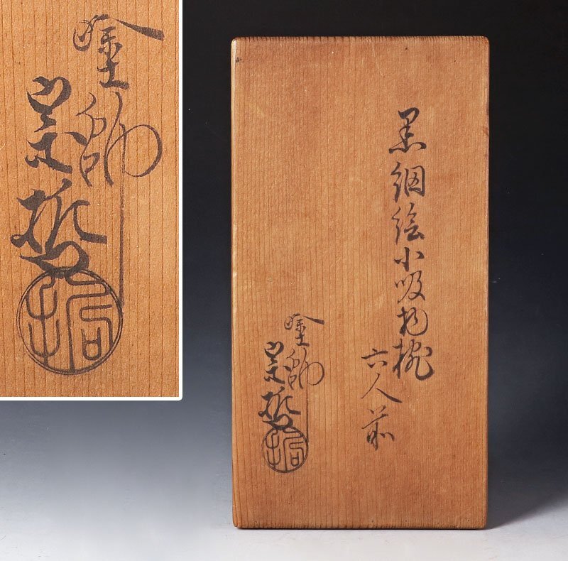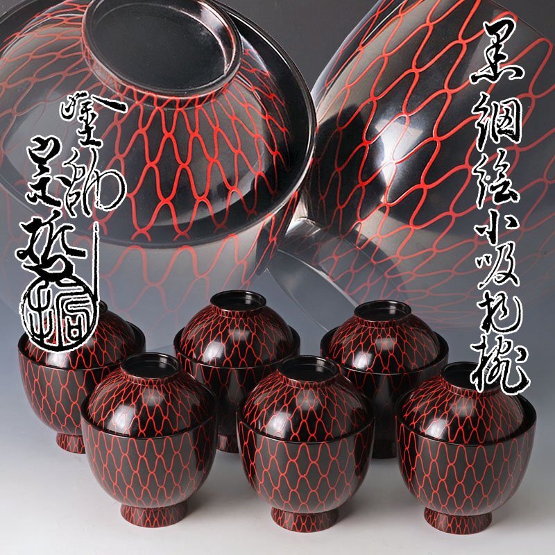 | 【古美味】十代中村宗哲 黒網絵小吸物椀 六客 茶道具 保証品 |