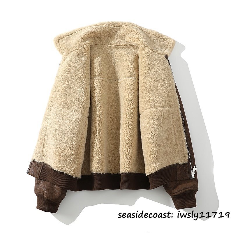 入手困難◆上品 ムートンコート メンズ フライトジャケット 超防寒 裏ボア 厚手 ライダース 毛皮 ファーコート バイクウエア グレー XL