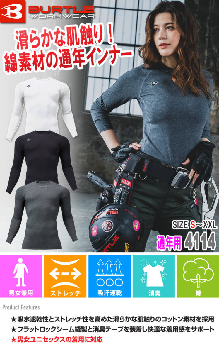 BURTLE バートル 長袖インナー 4114 コンプレッション 通年 L 35ブラック