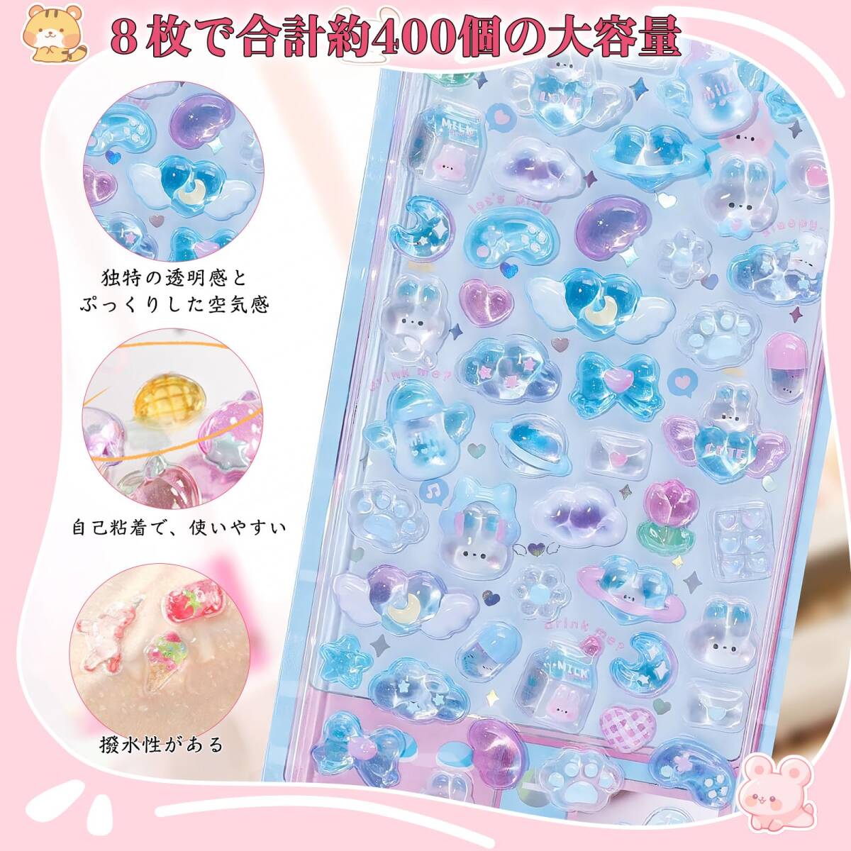 【新着商品】立体 かわいい 8枚セット ぷっくりシール ごほうび キラキラ ぷくぷく 韓国 子供 大容量 ぷくぷくシール スマホケ