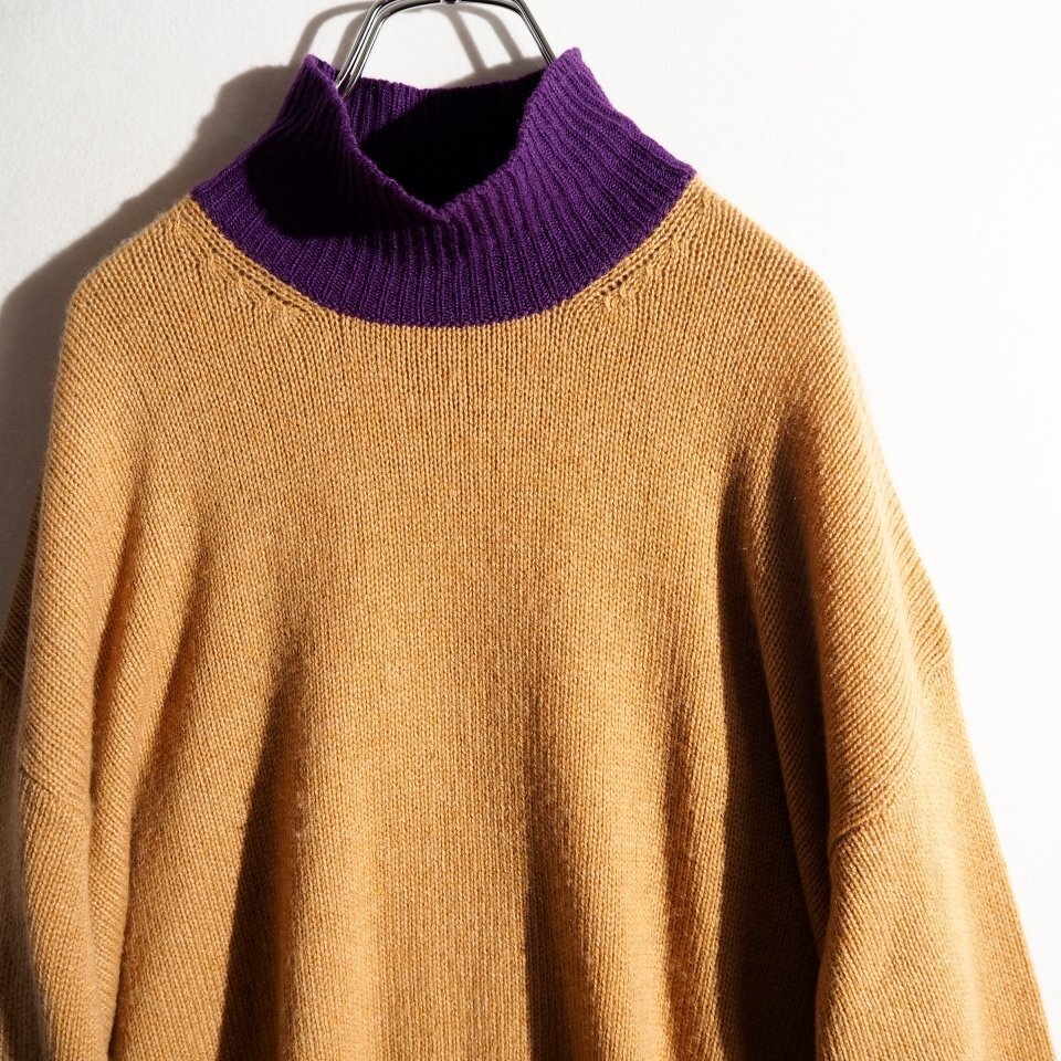 ハイネック カラーブロック カシミヤニット ベージュ 40