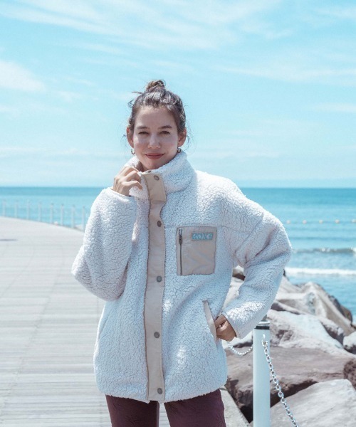 参考商品名:UPON US ZIP/ロキシーレトロブランドロゴワッペンボアスタンドジャケット