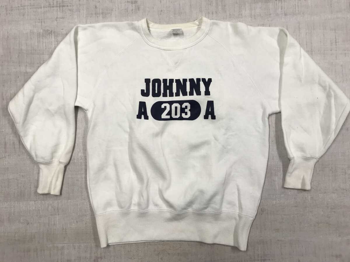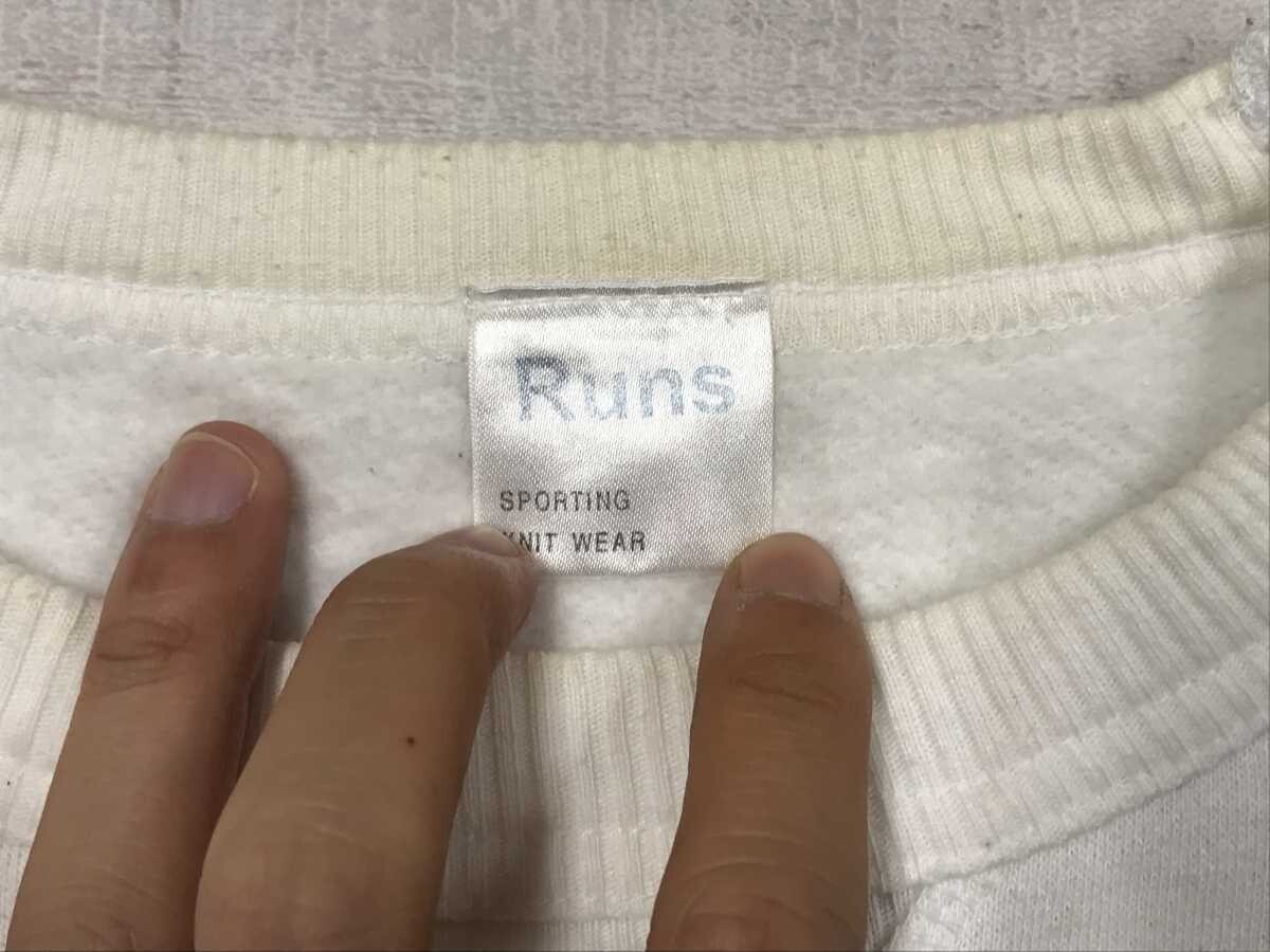 ランズ Runs オールド アメカジ スポーツ 英字 カレッジ 染み込みプリント Vガゼット スウェット トレーナー プルオーバー メンズ L 白 です。