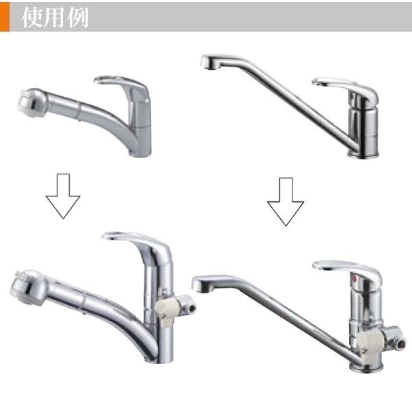 | シングルレバー混合栓の上部と本体の間で分岐する事ができます。 |