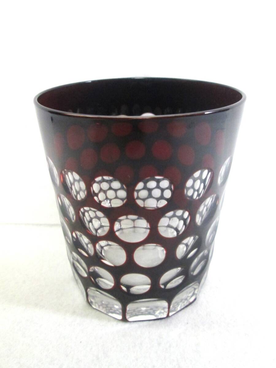 色被せ アールデコ 切子 カットグラス 銅赤? 赤茶 茶色系 ロックグラス カットガラス レトロ