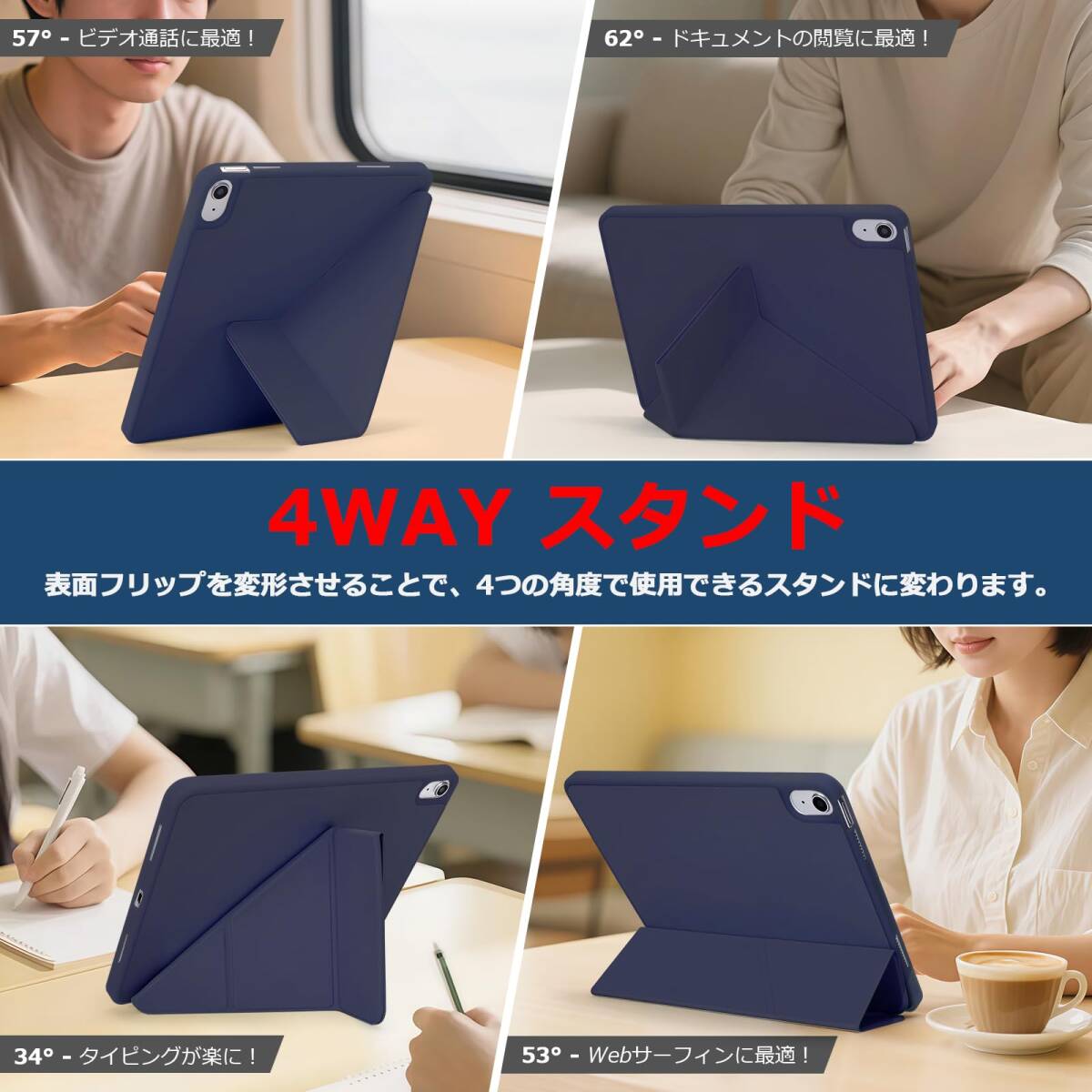 iPad 11世代 A16 / 10世代 ケース 2025 / 2022 11 / 10.9インチ 対応 三つ折りスタンド 横置&縦置可能 ペンシル収納ホルダー付き 軽薄 軽量 オートスリープ機能対応 耐衝撃 (ネイビーブルー)