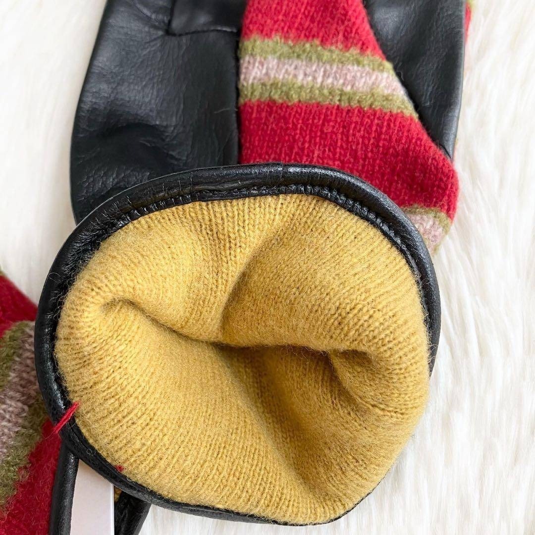 やわらかな羊革と暖かいニットのコンビ手袋。
