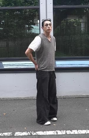 こちらウィメンズモデルD-sireですがメンズモデルD-riseと同シルエットです。平置き寸法ご確認いただきお好みのサイズをお選びいただけると幸いです。OUR's のモーガン蔵人さんはD-riseを着用されています。