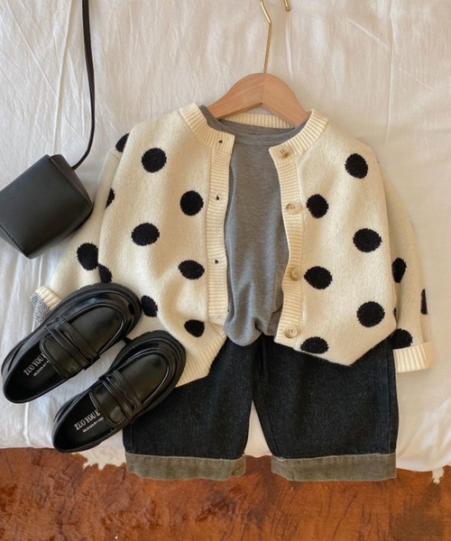参考商品名:【aimoha-KIDS-】子供服 ドット模様ニットカーディガン