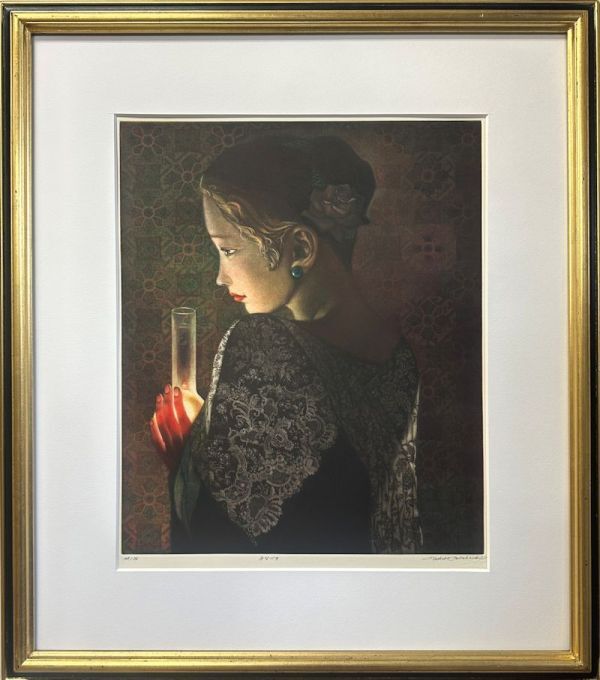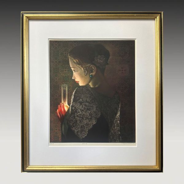 1944年生まれ。福岡県出身。 武蔵野美術大学油絵科卒業。 1973年春陽会展出品、以降毎年出品。 1985年練馬区立美術館創立記念展。 1986年ドレスデン造形美術大学交換展(ドイツ)。 1988年ノーベル賞顕彰財団画集刊行(スウェーデン)。 1989年練馬の美術’89(練馬区立美術館)。 メゾチント技法で美しい女性像を独自の世界観で描き出す銅版画家。 |