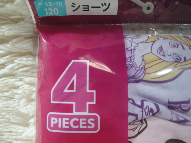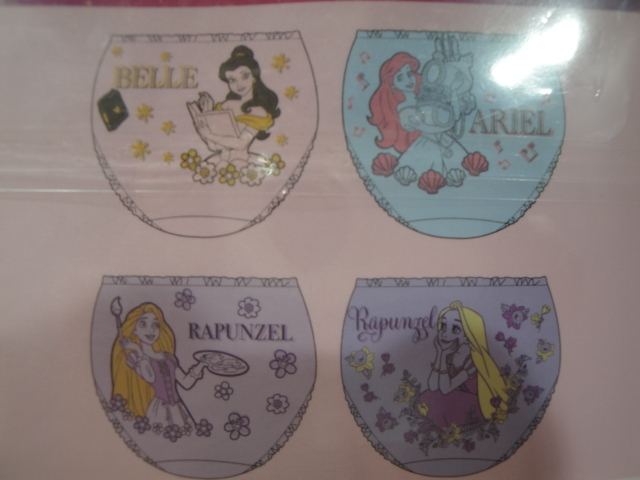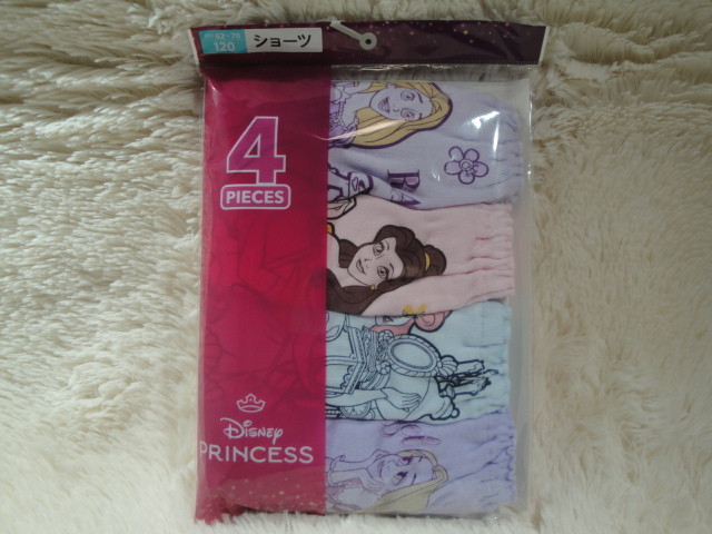 S新品120-764 4枚組 ディズニー プリンセス ジュニアショーツ  ピンク + 薄紫 + 紫 + 薄ブルー すべてバックプリント