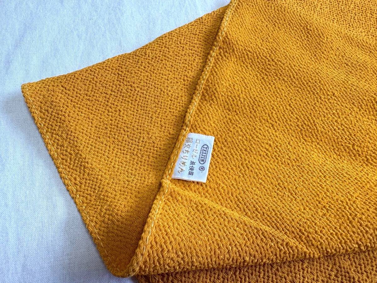0011★風呂敷*山吹色*ちりめん*59㎝×64㎝*着物*和装*和服*和柄*包装*レトロ*アンティーク*リメイク*生地*ハンドメイド★