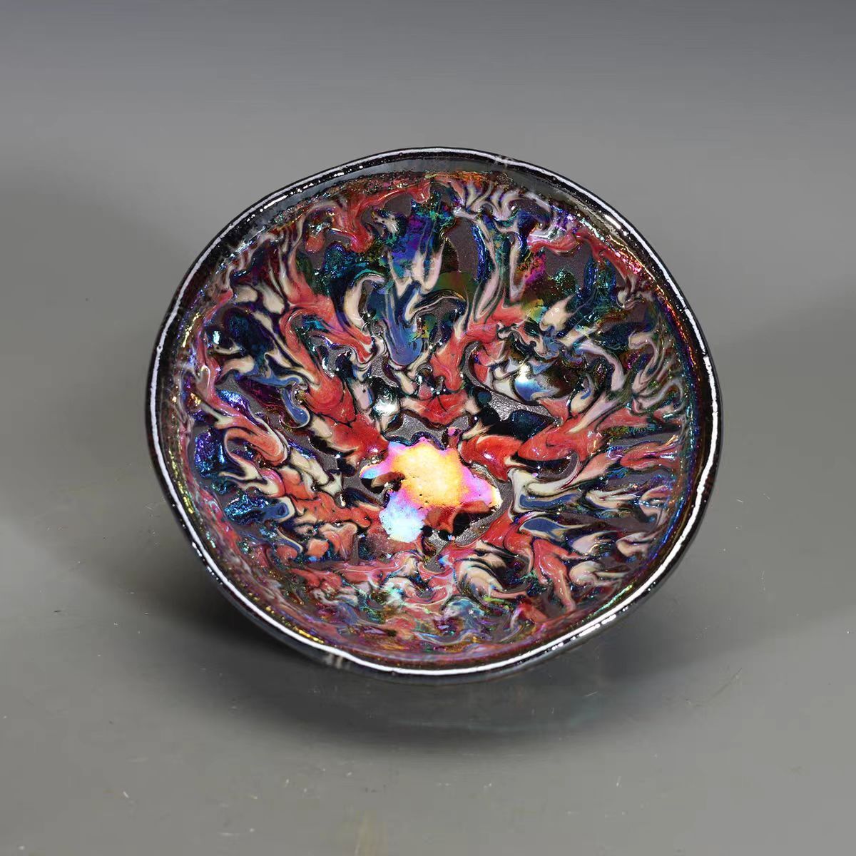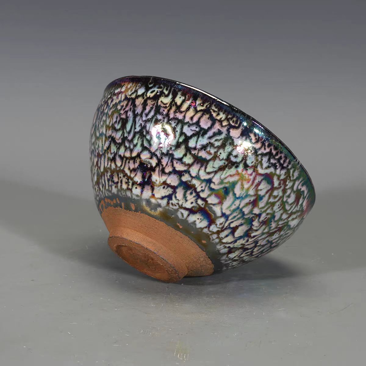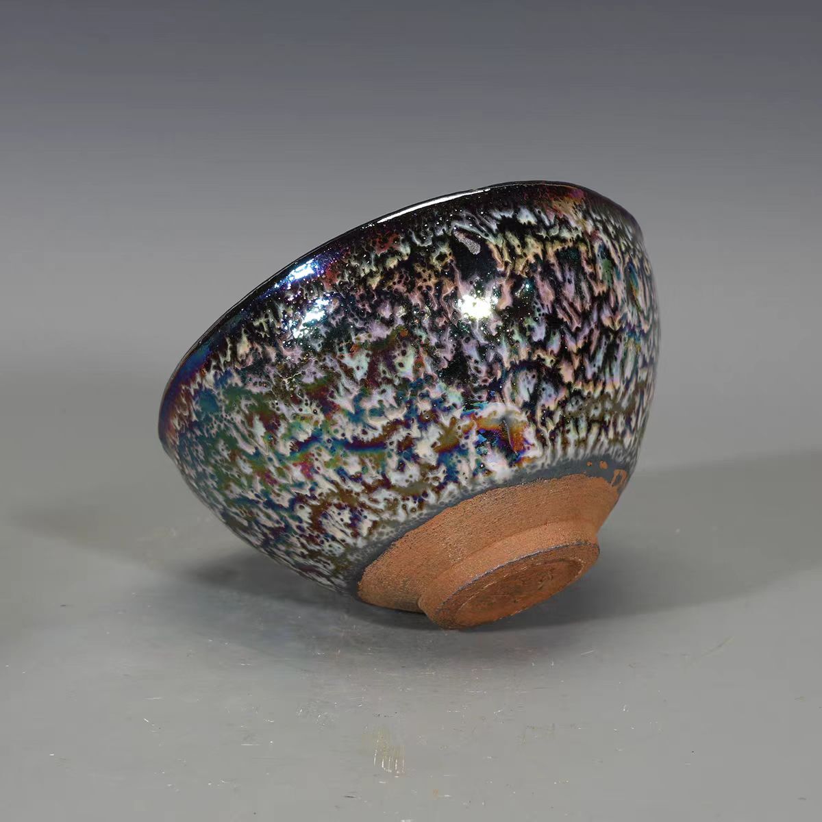 宋代 古陶磁器 建窯 七彩光 窯変 盃 建盞 茶盞 酒碗 供御 瓷器 古擺件 置物 時代物 古董品 骨董 旧家蔵出し 唐物 中国古玩 古美術品