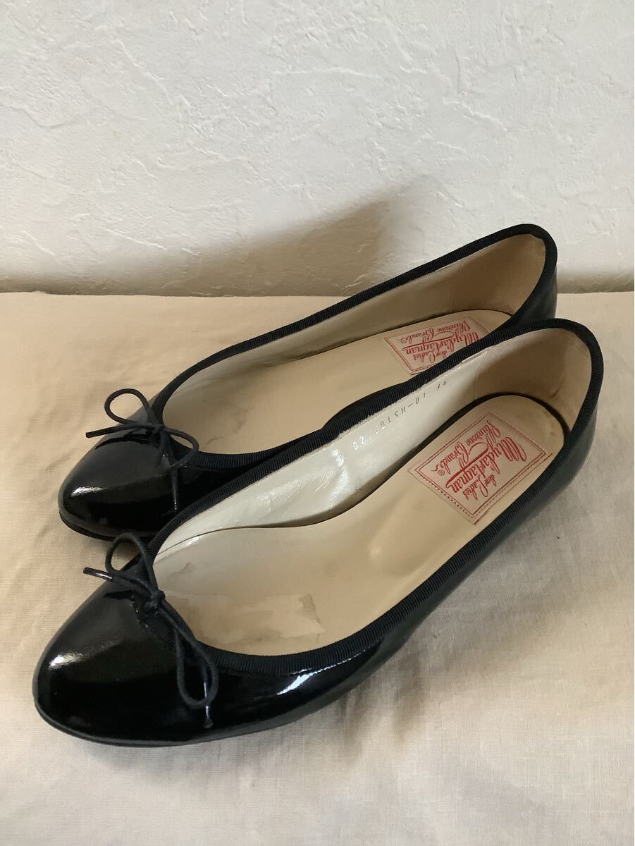 定番のバレエシューズですが浅めのデザイン、靴下やタイツで合わせてもお洒落で素敵です。