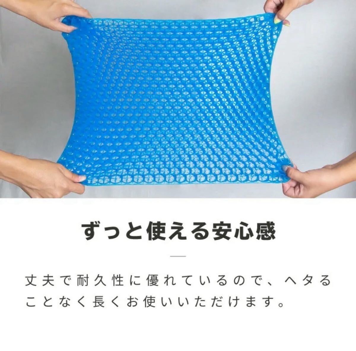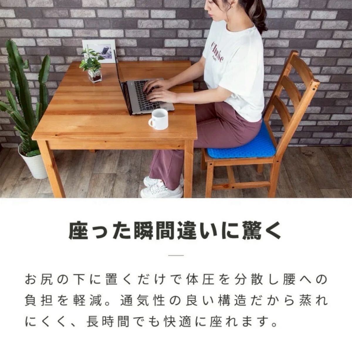 座った時のお尻への圧力ポイントを軽減しながらしっかりサポートしてくれるゲルクッション!
