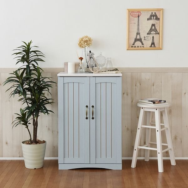 | バイカラーで魅せるフレンチカントリースタイルのキャビネット。 コンパクトサイズなので一人暮らしにも最適です。 扉収納の中は、可動棚で収納物に合わせて高さを自由に変えられます。 丸みを帯びたフォルムと、アンティーク調の取っ手といったディテールがカントリーテイストを漂わせます。 |