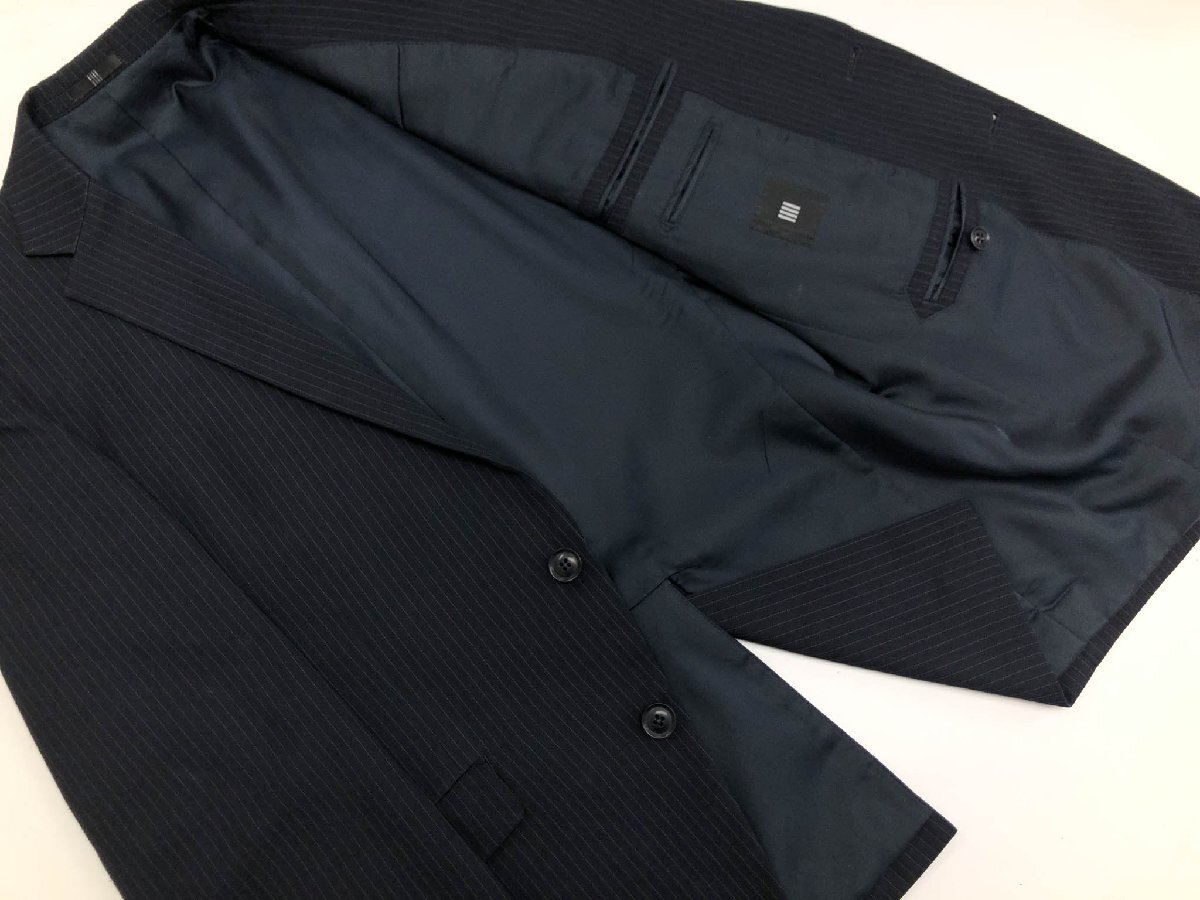 美品【SUIT SELECT スーツセレクト】 BLD1204 シングル2ボタンスーツ (メンズ) sizeAB5 暗めのネイビー系 ストライプ織柄 ◯33RMS1492◯