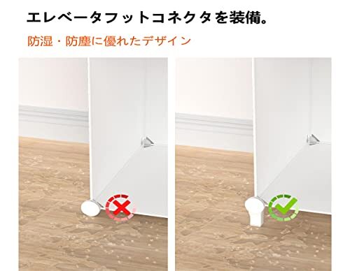 高品質素材:本棚は、ハイスペックな厚みのあるPP素材のパネルと高品質ABSコネクターで構成され、部品間の結合を強固にしています。金属フレーム全体を補強し、キューブ1個あたり5kgまでの荷重に耐える頑丈な構造で、強度が高く衝撃に強く、変形しにくいのが特徴です。