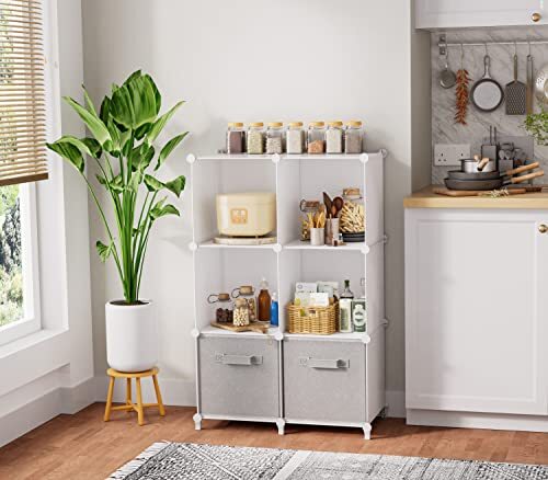 SIMPDIY 本棚 収納棚 収納ラック 整理棚 大容量組み立て式 衣類収納ボックス 便利な ワードローブ 洋服収納/靴棚 カラーボックス 収納家具/おもちゃ棚/衣/子/棚おしゃれ,防塵・防水・耐荷重 幅300mmx奥行300mmx高300mm(6・白色)