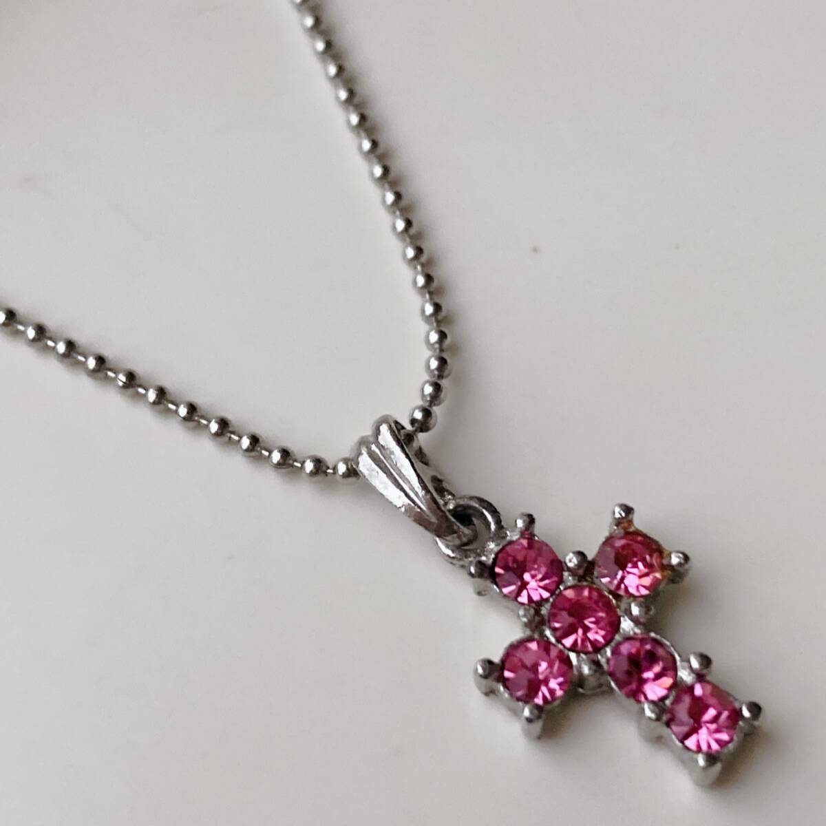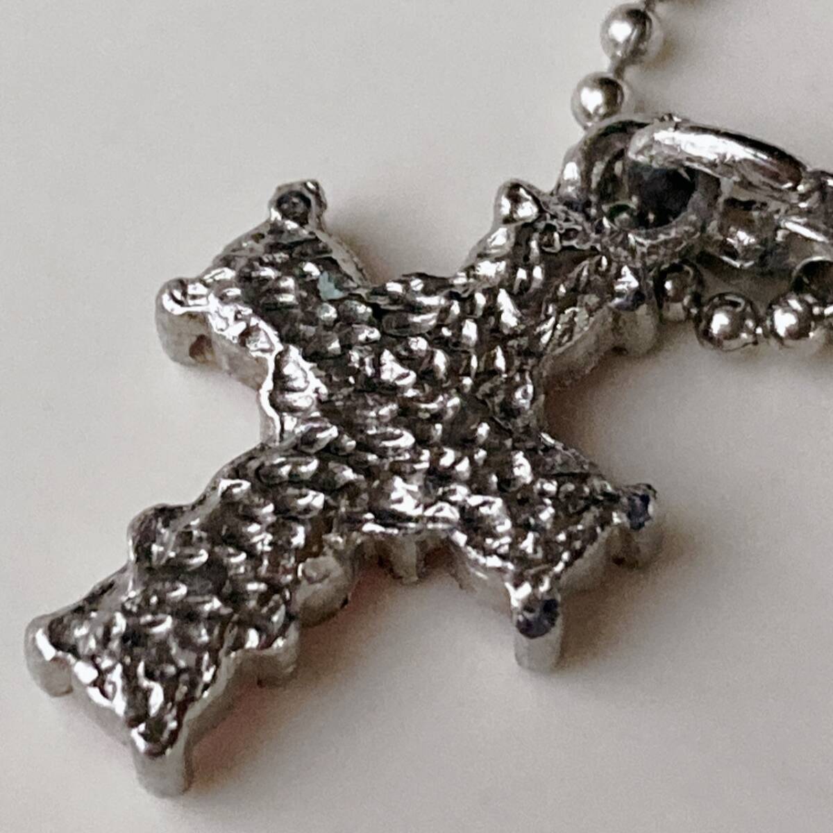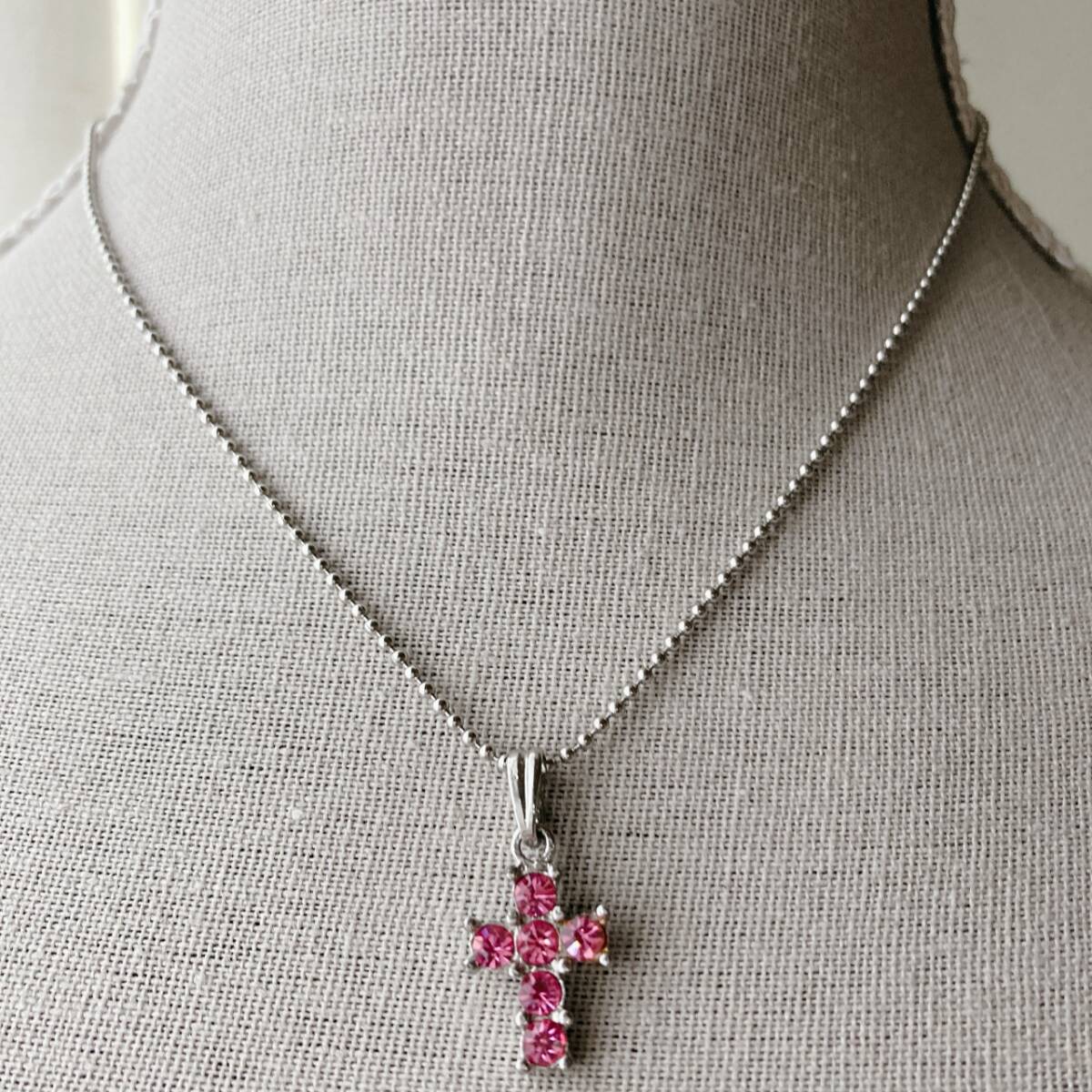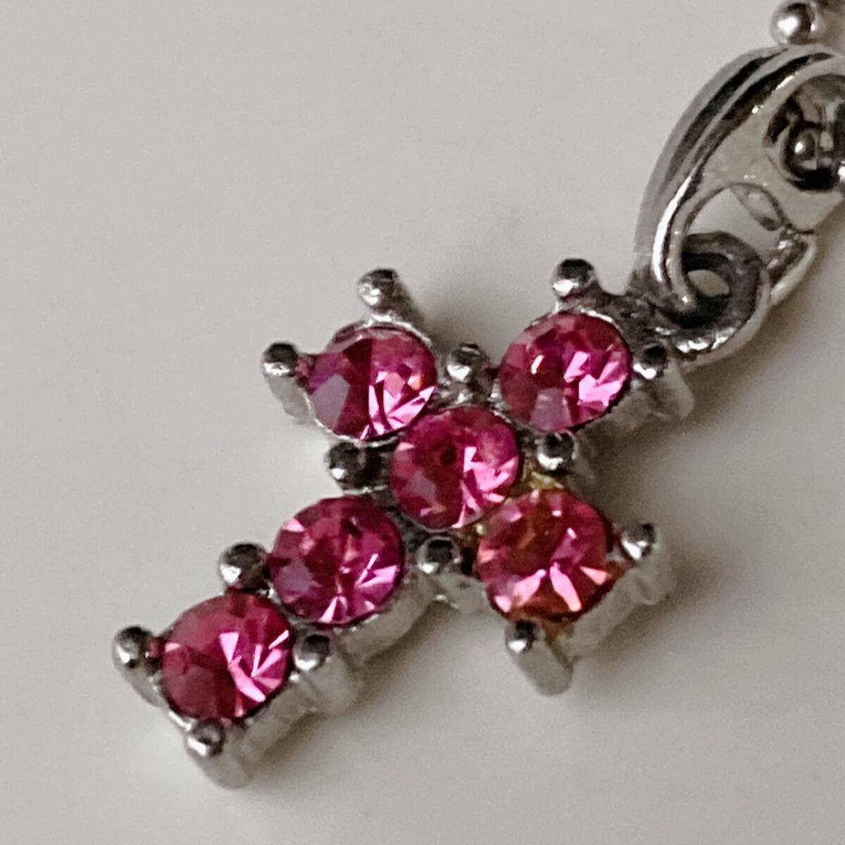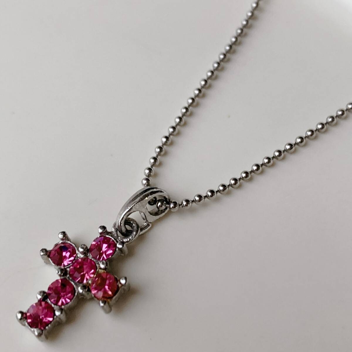 ネックレス ショート クロス ピンクラインストーン シルバートーン 美品■Vintage jewelry accessoriesF0401