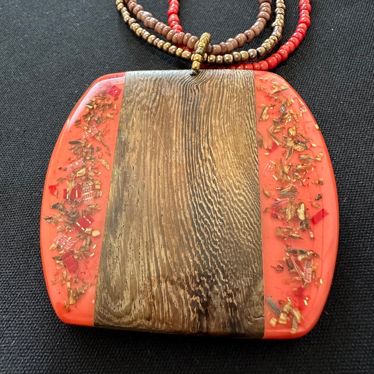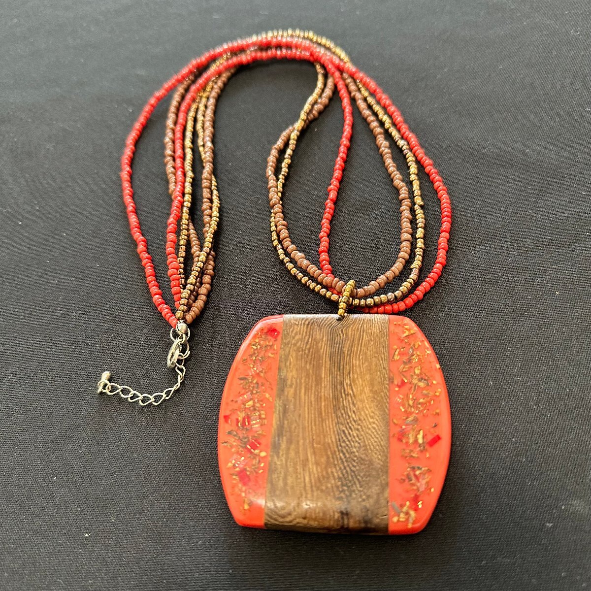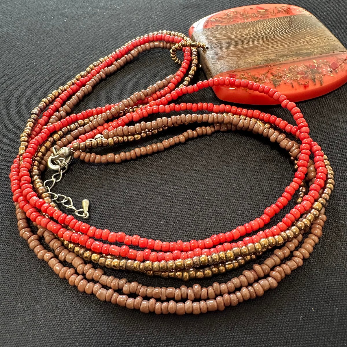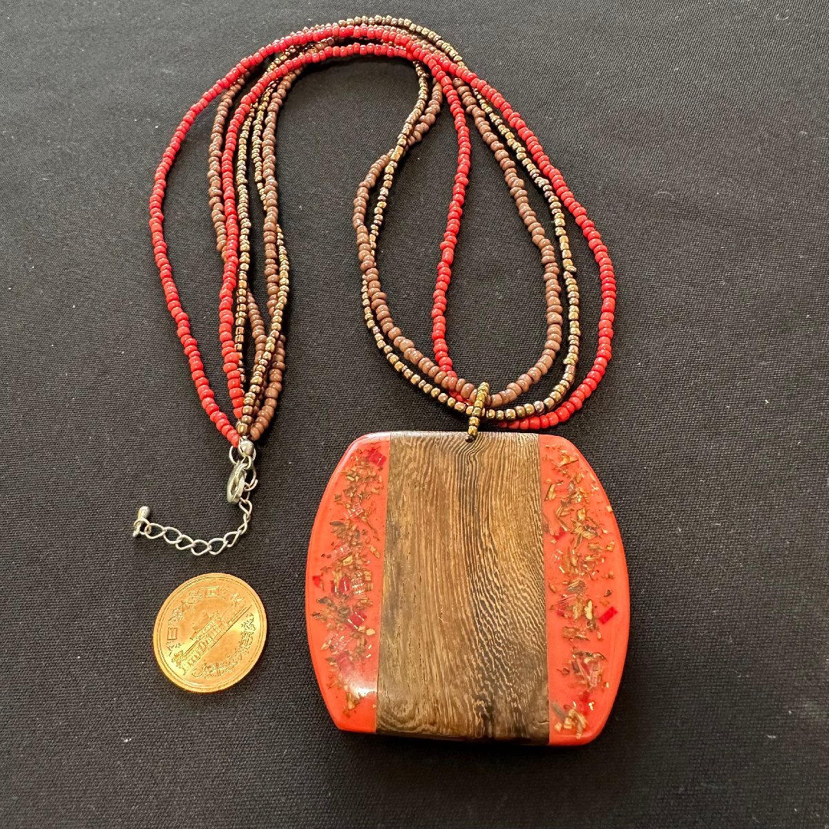 q2812 ヴィンテージ ビーズ/ 木製 ネックレス ペンダント アクセサリー 上品 華やか 赤/茶
