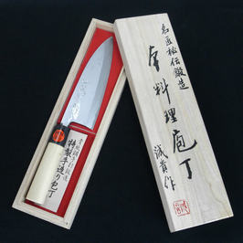 刃物の町、兵庫県三木市の田中一之刃物製作所による和包丁。地金を刃金に鍛接して昔ながらの手打ちによる製法、いくつもの工程を重ねて造り上げられる包丁は、職人がひとつひとつ鍛造しておりとても丈夫で長切れします。