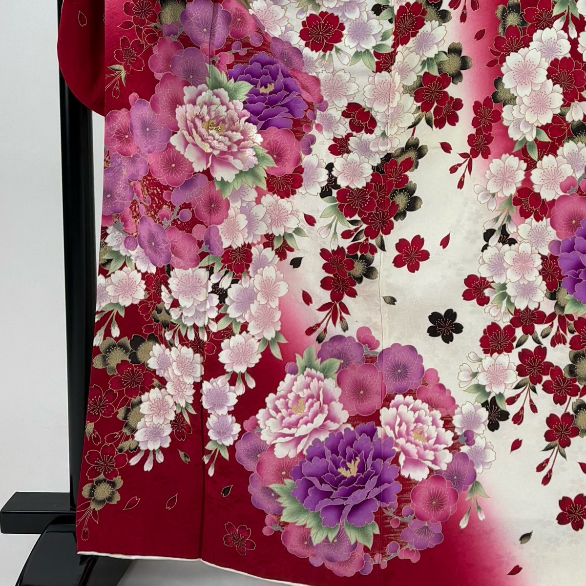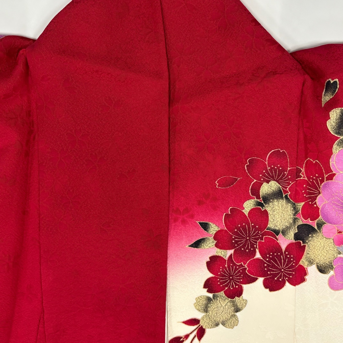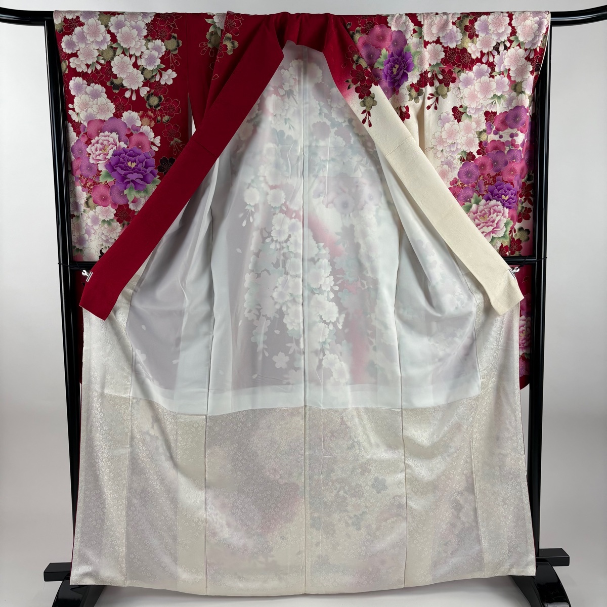 | 振袖 美品 名品 桜 花丸文 刺繍 金彩 赤 袷 身丈165 裄丈66 M 正絹 【中古】 |
