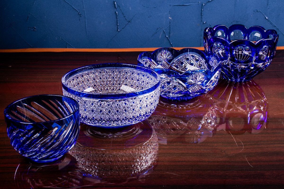 【うつわ】 切子ガラス 鉢 4点 F058A 古美術 骨董 古玩 茶道具 日本料理 料亭 懐石