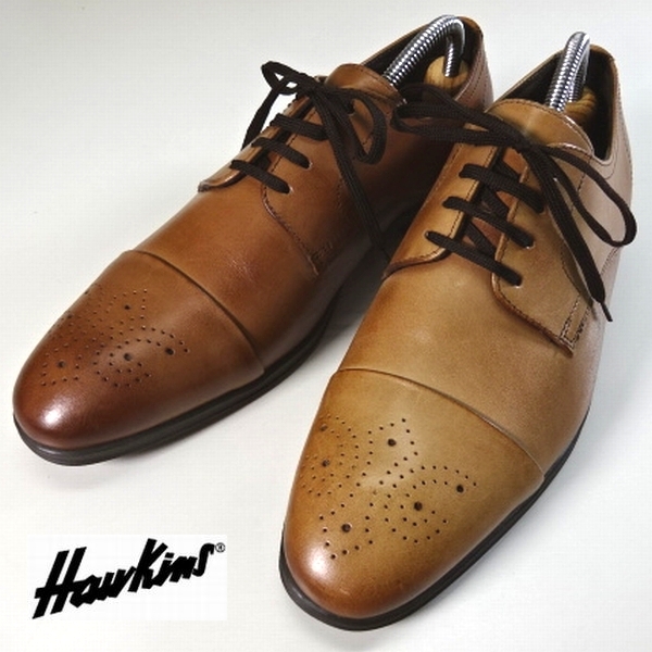 ☆新品訳 ホーキンス 本牛革 レザー ビジネスシューズ 靴 26.5-27cm 41 茶 S-TIP ストレートチップ Hawkins Custom Grade メンズ 男性 紳士