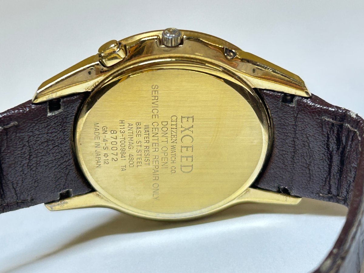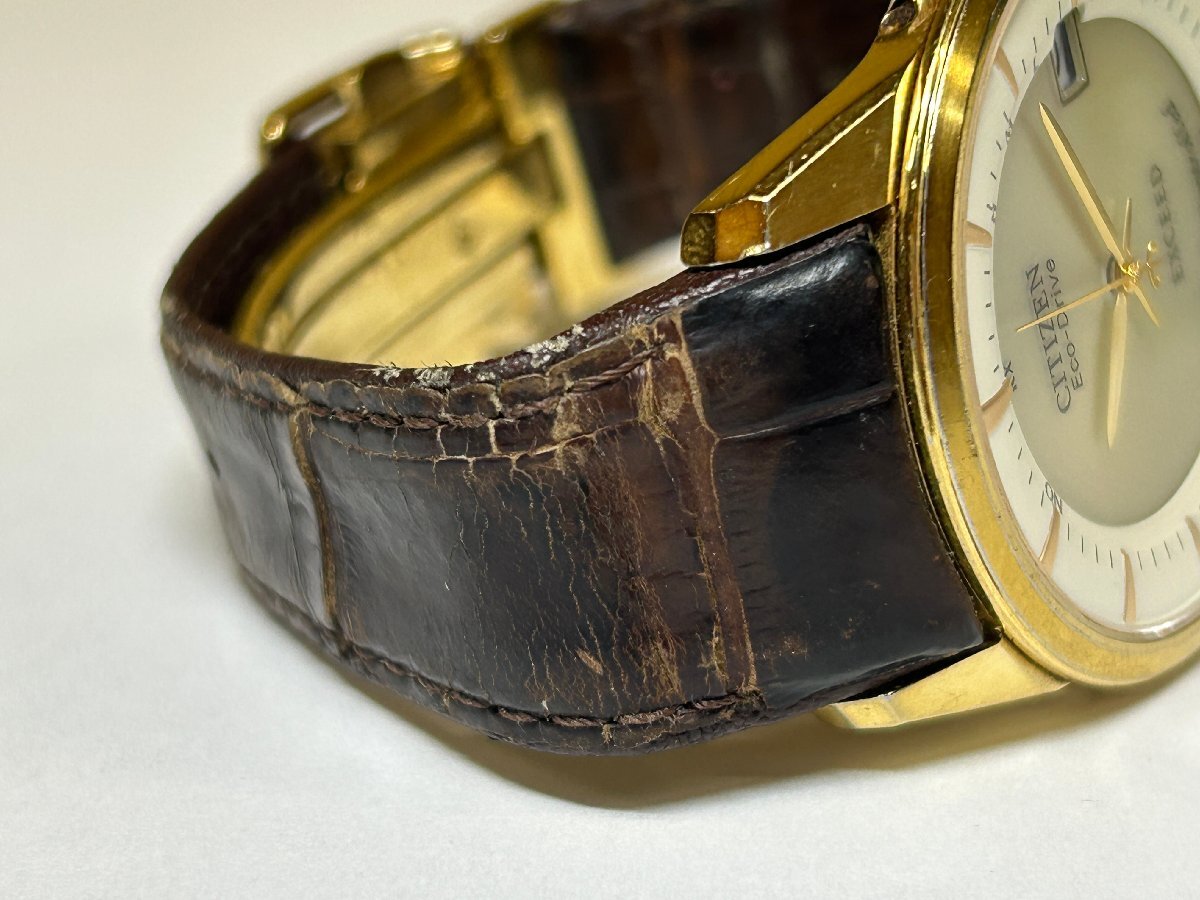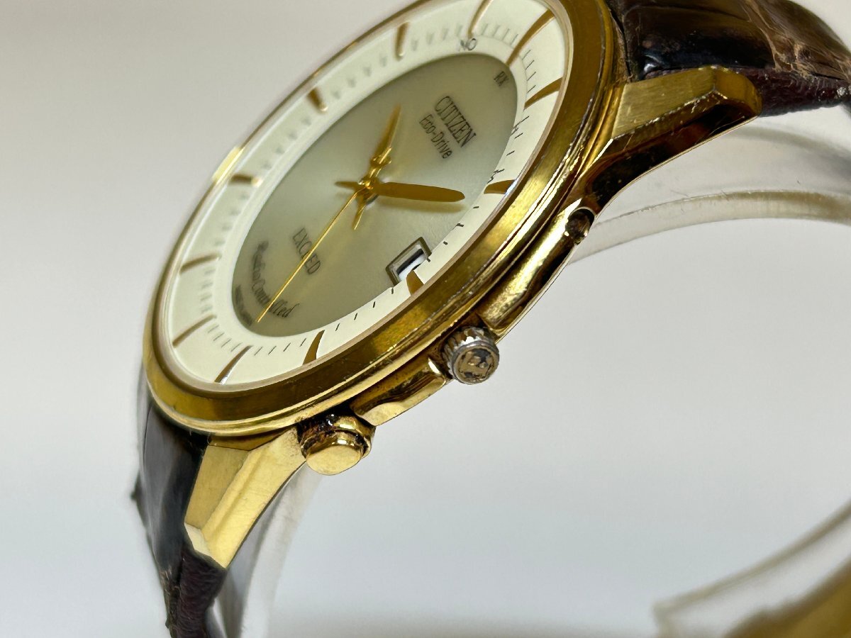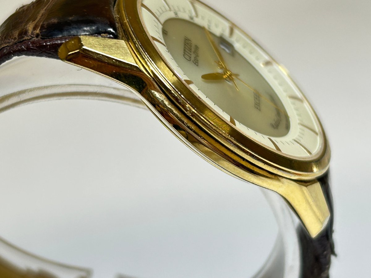 稼働品です。 ガラス面は目立つ傷もなく、全体的にきれいな状態です。 ベルトには劣化が見られますので、交換をおすすめします。 状態は画像でもご確認ください。 エコ・ドライブ搭載で電池交換不要、さらに電波受信機能付きで時刻合わせの手間もありません。 上品なゴールドカラーとレザーベルトが大人の落ち着きを感じさせるモデルです。 ◆商品について◆ 本商品は、東京都内の施設・デパート・空港・電車などで届けられた忘れ物を 正式な手続きを経て入札・落札したものです。 都内で忘れ物として届けられ、残念ながら持ち主のもとへ戻らなかった品を、 責任をもってリユース商品としてお届けいたします。 あくまで〈忘れ物〉由来の中古品ですので、汚れやダメージがある場合がございます。 美品をお探しの方はご遠慮下さい。 ◆エコにもつながる選択◆ この再流通の取り組みは、SDGs「12番:つくる責任・つかう責任」にもつながります。 気になる商品がありましたら、ぜひオークションにご参加ください。 思わぬ掘り出し物との出会いがあるかもしれません。 おまとめ品などを毎日出品中です。 気になる方は、ぜひ「ウォッチ」と「フォロー」をおすすめします! お得な商品を見逃さないためにも、ぜひチェックしてくださいね。 | |