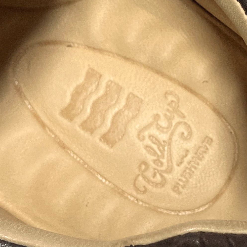 購入後未使用の品物ですが展示品であった為、スレ・キズ、汚れ部分があり内側のサイズ表記部分にペンチェックが入っております。