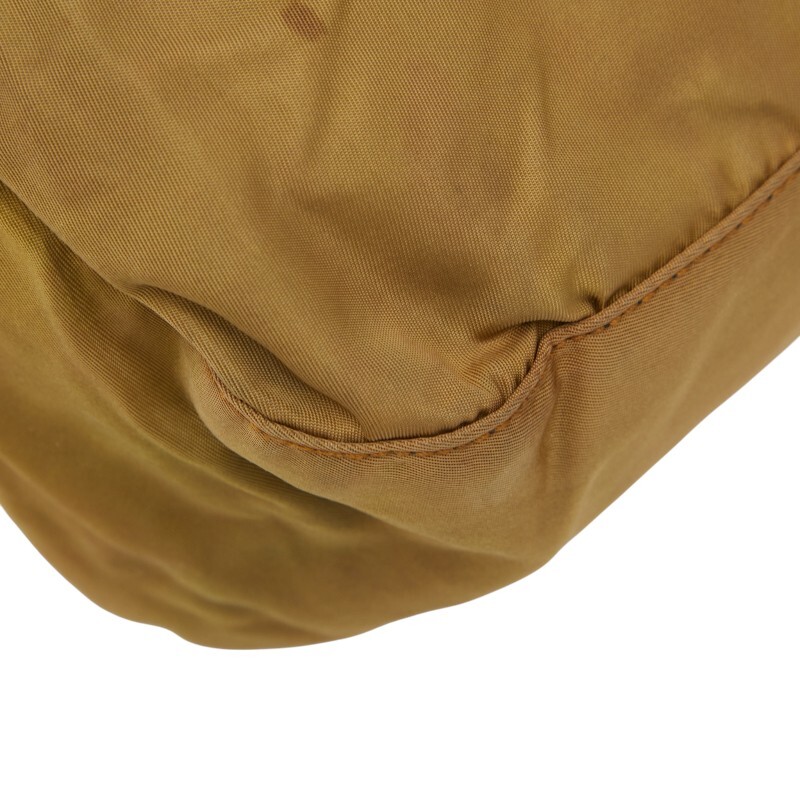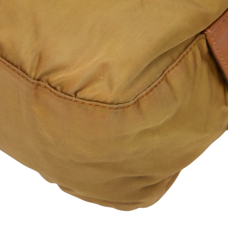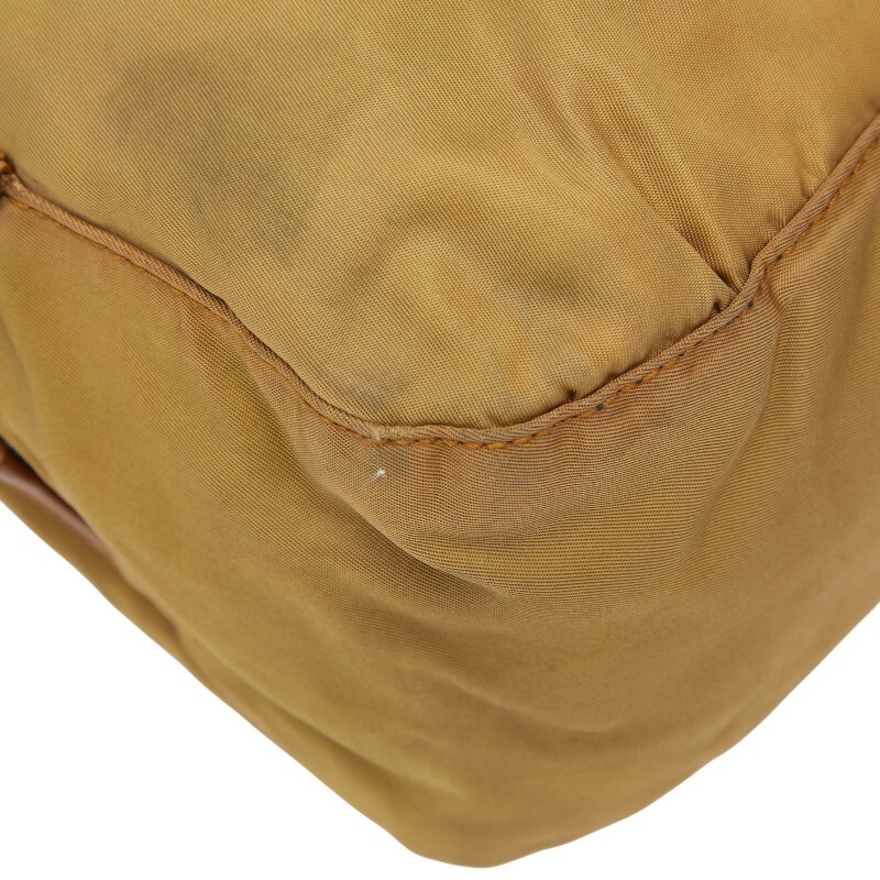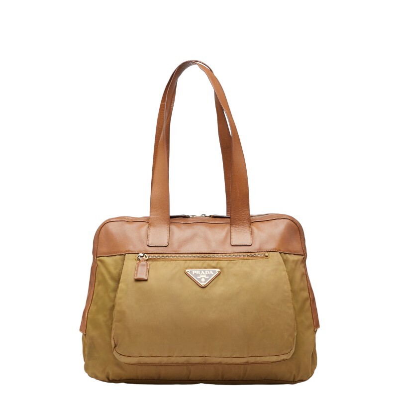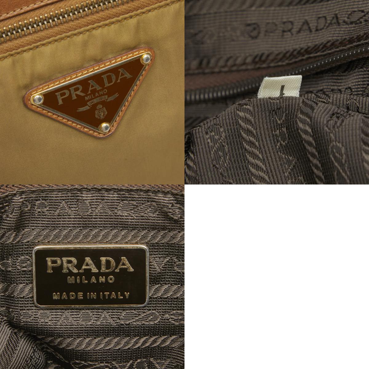 プラダ 三角ロゴプレート ハンドバッグ ベージュ ブラウン ナイロン レザー レディース PRADA 【中古】