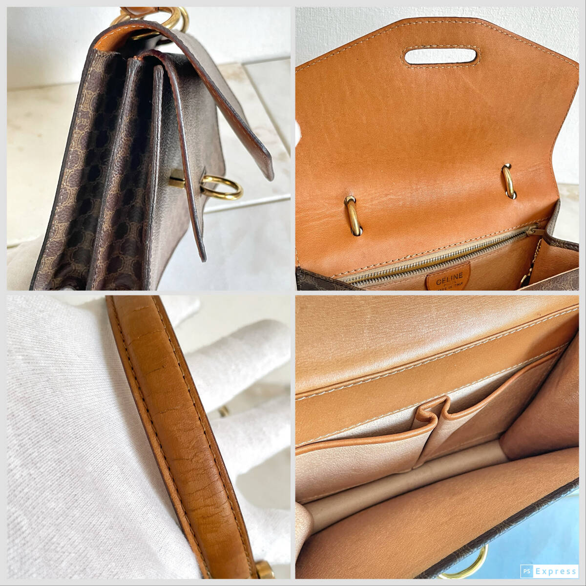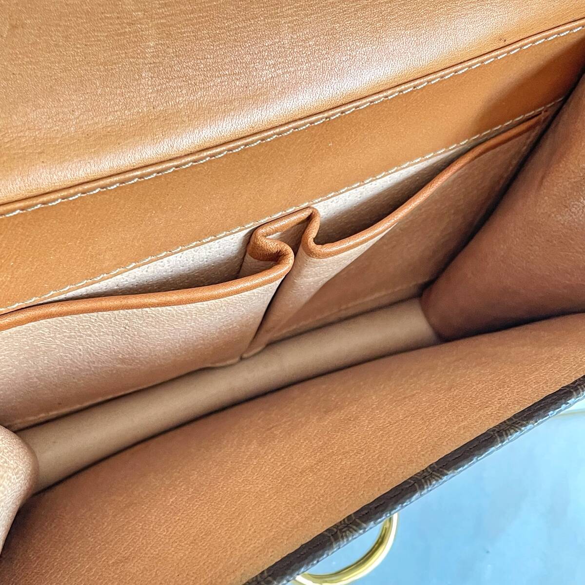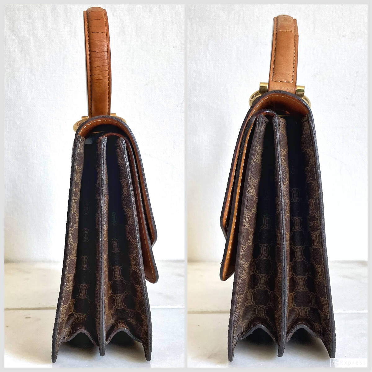 ☆激レア・ヴィンテージ☆ / CELINE セリーヌ / マカダム ガンチーニ Wフラップ ハンドバッグ / 茶 ブラウン / PVC +レザー / ゴールド金具 / イタリア製 正規品