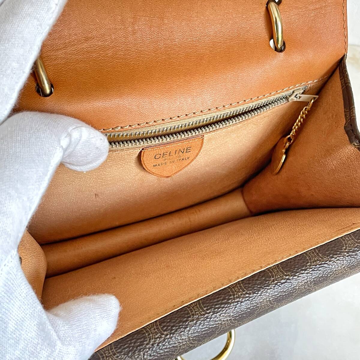 リバイバルで人気のセリーヌのヴィンテージバッグです☆ 持ち手ダメージがあるのでストラップに付け替えて流行りのチェーンショルダーにしてもかわいいです☆