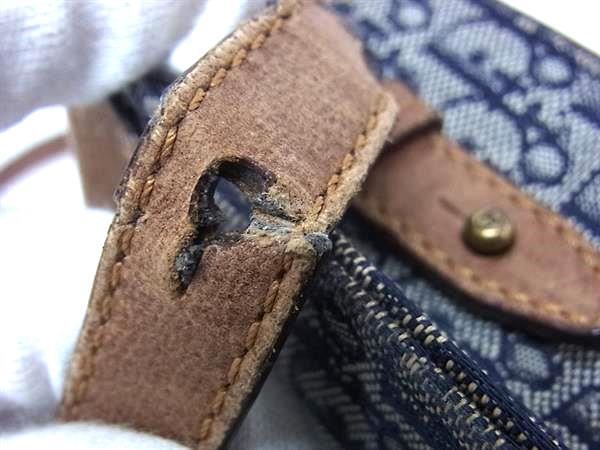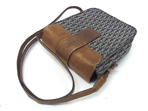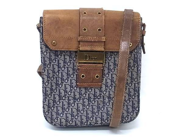 1円 ChristianDior クリスチャンディオール トロッター キャンバス×レザー クロスボディ ショルダーバッグ 斜め掛け ネイビー系 BM9896