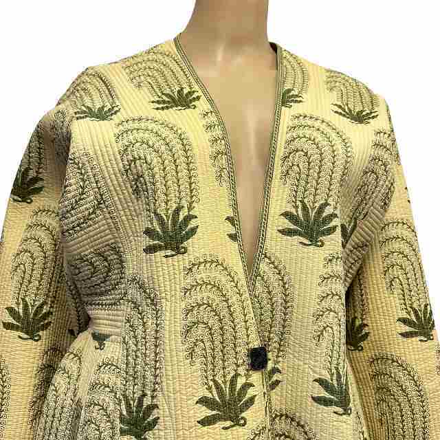 | 商品詳細 | NO-A5615 ★【ブランド】 *Brigitte Singh ★【特徴】 *インドのテキスタイルデザイナーであるブリジット・シン(Brigitte Singh)の作品です。 ラベルにある「LE JARDIN MOGHOL」は、「ムガル庭園」を意味し、彼女の代表的なデザインテーマの一つです。 ブリジット・シンは、18世紀のインドの伝統的なブロックプリント(木版捺染)の技術を現代に蘇らせることで知られています。 彼女のデザインは、ムガル帝国時代の細密画やモチーフにインスピレーションを得ており、繊細な植物の柄や豊かな色彩が特徴です。 特に、ポピーやバラ、アザミなどの花柄がよく使われます。 ・肩パット× ・裏地× ・伸縮性× ・ポケット○ ・季節性 春秋向け ※状態につきましては当社基準のランク表も合わせてご参考下さい。 | ||||||||||