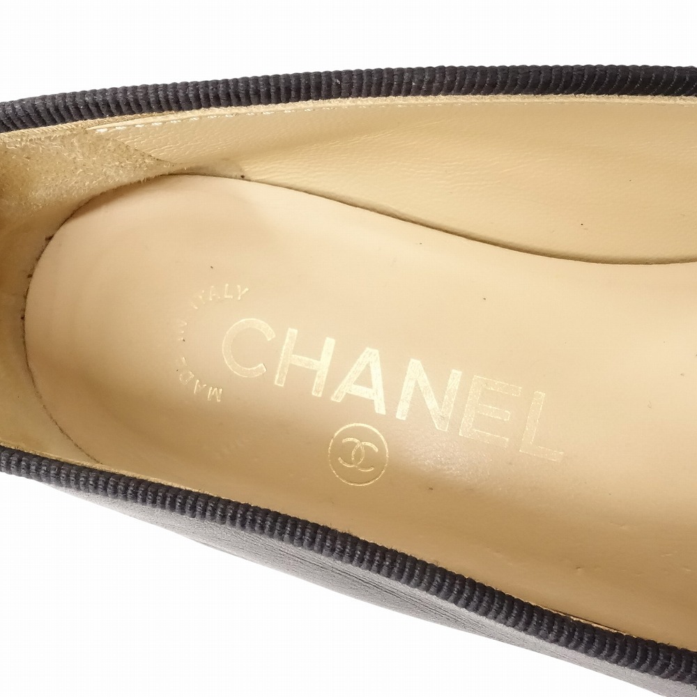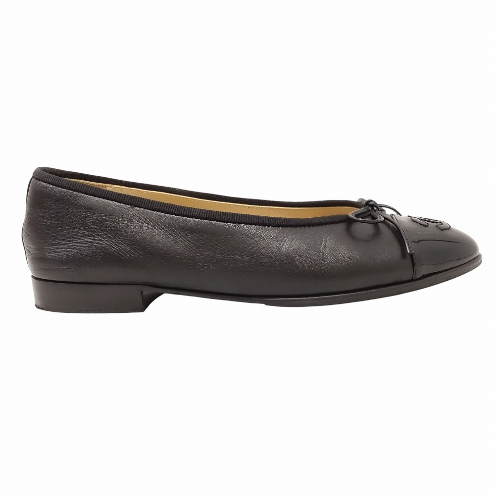 | 【CHANEL シャネル バレリーナ バレエシューズ リボン フラット ココマーク レザー パテント 靴 34.5 21.5cm 黒 レディース】 | |