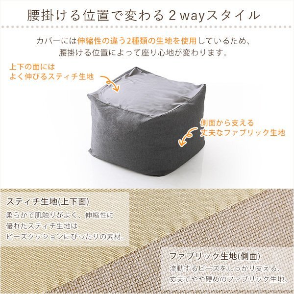 | 【ポイント】 コンパクトなキューブ型の日本製ビーズクッションです。 座り心地のよい、極小ビーズを使用しました。 生地の切り返しがオシャレなウォッシャブルカーバ―です。 座る位置によって2種類の座り心地が楽しめます。 カラフルな4カラーがございます。 |