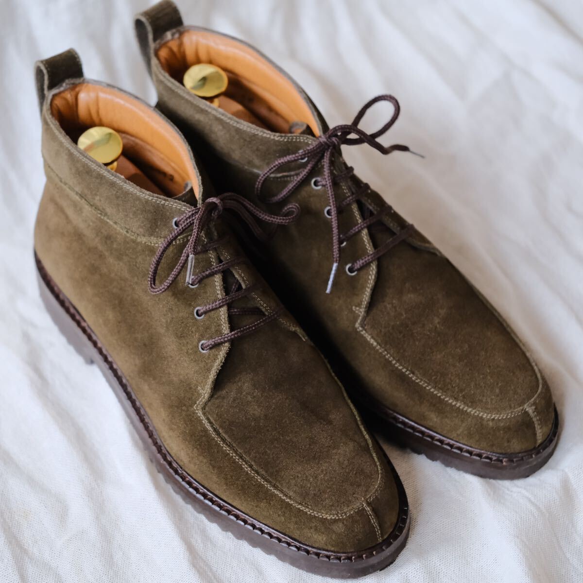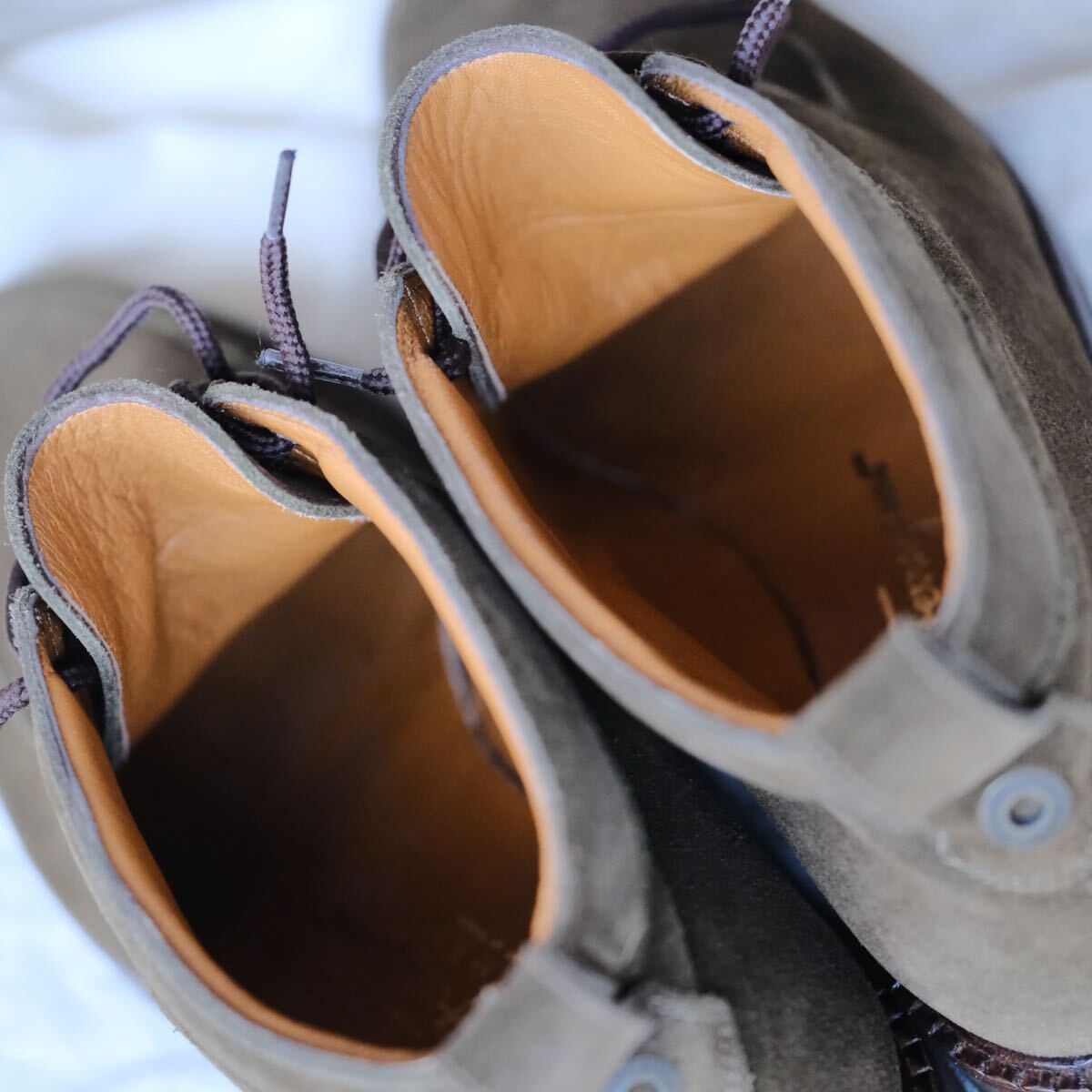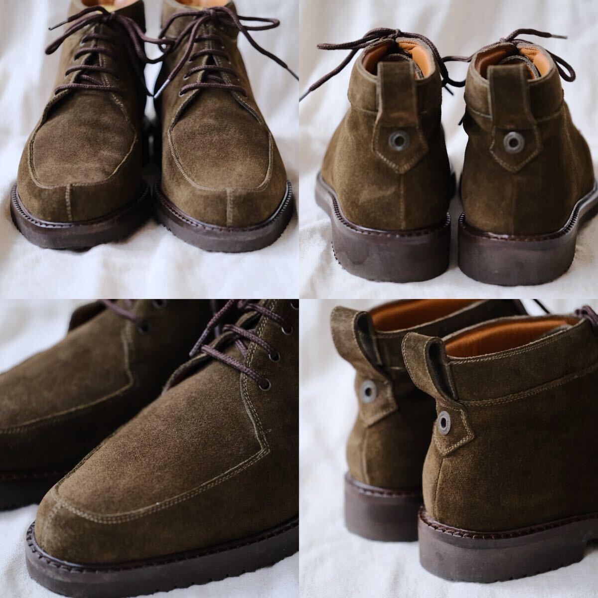 こちらはモスカーキのスウェードレザーをアッパーに用いた5アイレットのショートブーツ。